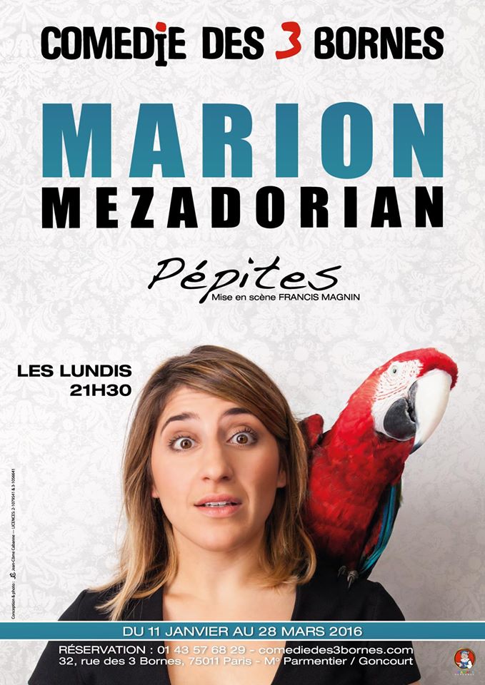 Marion Mézadorian « Pépites »; Le Lundi à 21h30 à La Comédie Des 3 Bornes;Prolongation Jusqu’au 27 Juin 2016. Reservation :