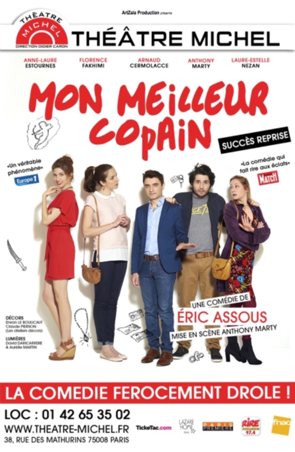 « Mon Meilleur Copain » d’Eric Assous, Mise En Scène d’Anthony Marty; Avec Anthony Marty, Arnaud Cermolacce, Laure-Estelle Nezan, Florence Fakhimi et Anne-Laure Estournes.