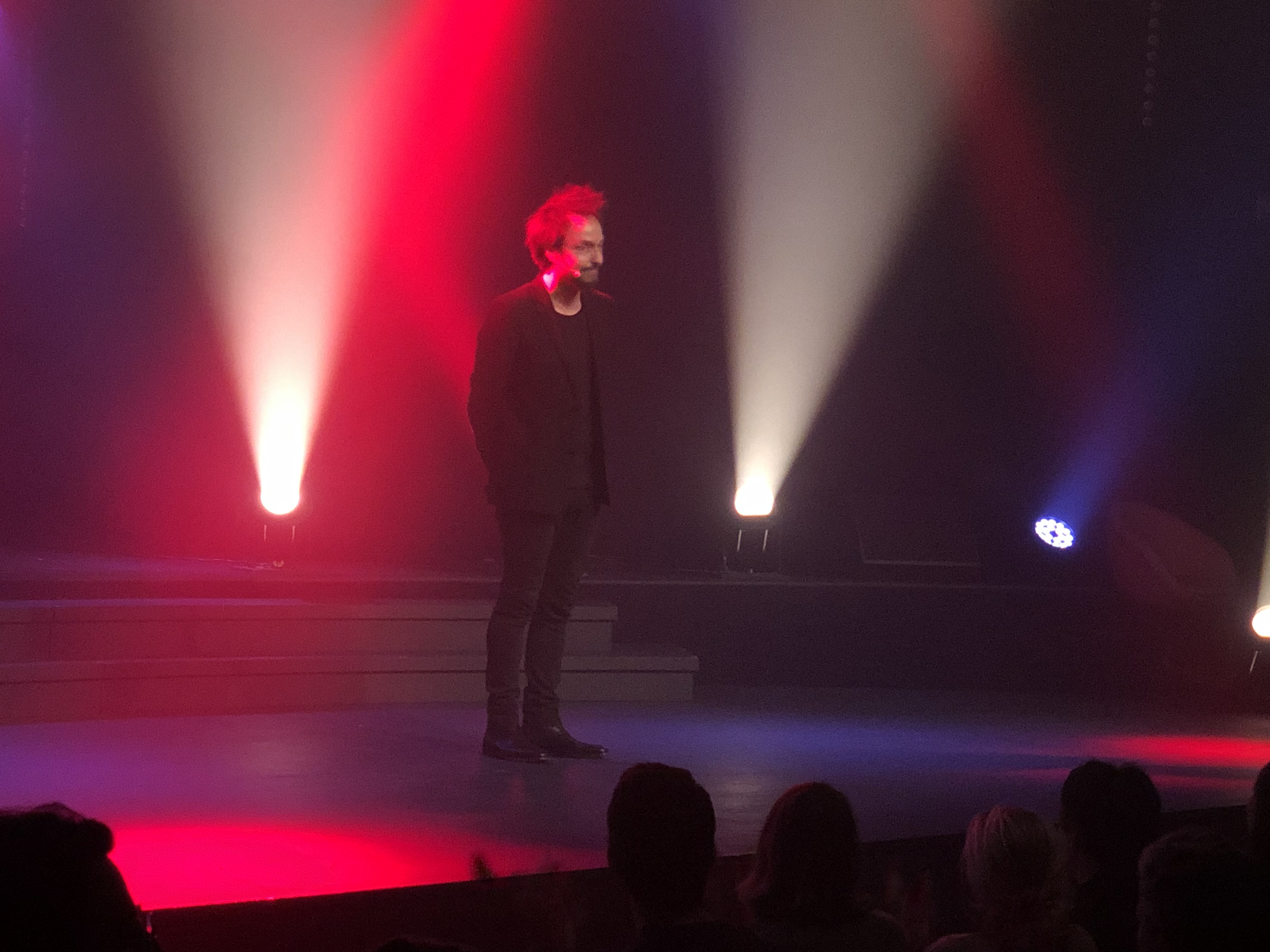 J’avais découvert David Azencot il y’a quelques années; et je ne cache pas qu’à l’époque je trouvais son humour trop noir et trop acide. Et lorsque j’ai eu la possibilité de voir tout son spectacle, j’y allais aussi avec la curiosité de voir si tout son Spectacle était du même ton. Et quel ne fut pas mon agréable surprise de découvrir que son spectacle entier est basé oui sur de l’humour noir et acide;mais beaucoup moins que ce que j’avais vu des années auparavant. Il garde son côté corrosif mais y a rajouté une légère touche douce et poétique. C’est sûr tout cela que l’on voit le talent d’auteur et aussi de Showman; rester grinçant en parlant des choses de la vie et de l’actu à sa sauce;mais sans choquer le public et au contraire en l’entraînant avec lui dans sa vision de la vie actuelle, et c’est exactement ce que j’ai vu ce soir là.