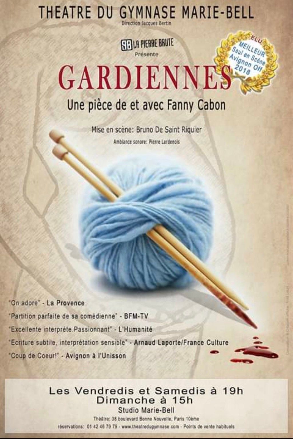 « Gardiennes » de Et Avec Fanny Cabon; mise en scène de Bruno De Saint-Riquier. Au Théâtre Du Gymnase; Les Vendredis et Samedis à 19h et les Dimanches à 15h.