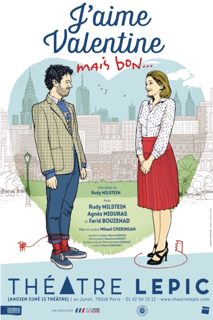 « j’Aime Valentine;Mais Bon… » de Rudy Milstein; Mise En Scène de Mikael Chirinian. Avec Agnès Miguras, Rudy Milstein et Farid Bouzenad. Au Théâtre Lepic Du Mercredi Au Samedi à 21h et Le Dimanche à 16h
