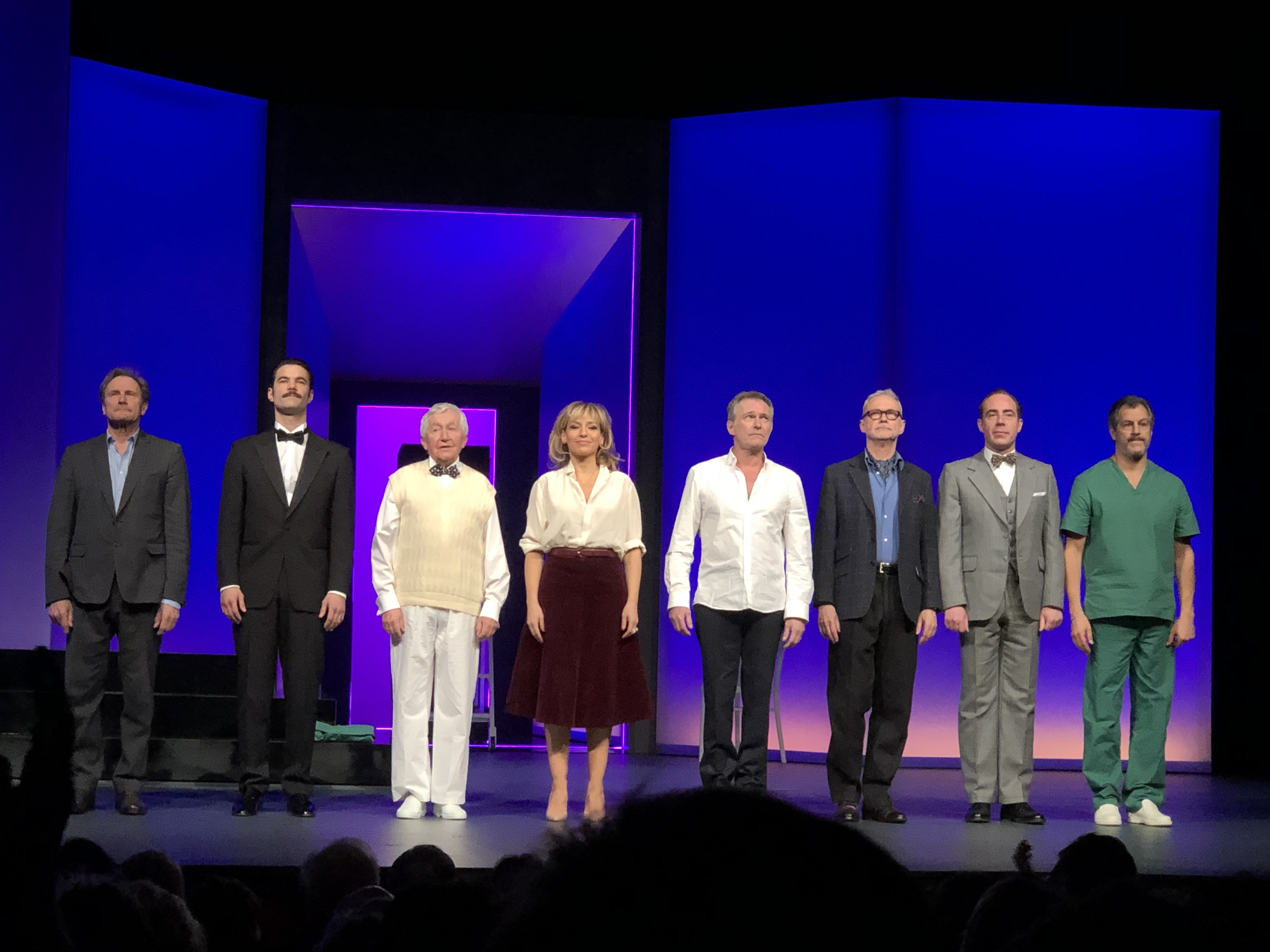 Côté Distribution; elle est très belle et dessert bien l’intrigue. Bruno Wolkowitch nous offre un Docteur Losseray intègre et attendrissant, malmené et oppressé par un Claude Aufaure simplement épatant et détestable à souhaits en Docteur Brézé. Valentin De Carbonnières est simplement très Bon dans son personnage du Docteur Berg; jeune et talentueux chirurgien un brin arriviste et orgueilleux. J’avais peur de voir quelqu’un faire « du Depardieu » en reprenant son personnage dans le film;mais là j’ai vu une appropriation totale du personnage par un comédien (plus jeune que le personnage original) qui arrive même à faire oublier l’original. Jean-Philippe Puymartin est un Mathy assez mystérieux, en comparaison du film;car dans le film Mathy prend vraiment le parti de Losseray, alors que sur scène on a du mal à situer le psychiatre. Julie Debazac nous offre une Madame Losseray tendre mais aussi brute de décoffrage; car elle ne se gêne pas pour remettre les choses (et les gens) en place, y compris son mari qu’elle voit dépérir psychologiquement et changer d’esprit du tout au tout. Francis Lombrail campe un commissaire Giret plutôt en dehors de l’histoire; mais qui va devenir malgré lui une victime collatérale de ce que subit Losseray. La scène où il se retrouve avec Losseray et Simon suite à L’opération de sa femme (scène très compliquée à jouer);il la joue avec une telle intensité que l’on a autant de mal pour ce qui lui arrive, autant qu’à son personnage. Jean-Philippe Bêche est un Simon, ami et collègue de Losseray, plus important que dans le film. Il a une part plus forte car il est celui qui fait démarrer l’histoire (d’ailleurs commencer seul comme ça face public et amener l’histoire en transmettant ses sentiments et ressentis uniquement par le regard;je dis simplement respect 👏). Légèrement porté sur la boisson mais très tendre et dévoué; il est un témoin principal de ce que subit son ami, prend entièrement sa défense et tente de le protéger jusqu’au bout. Jean-Philippe Bêche nous offre un jeu simple et tout simplement beau; qui colle à son personnage. Le personnage de Robert Brézé, interprété Bruno Paviot, est en grande partie un personnage comique car il est le souffre douleur de son père et aussi un peu la tête de turc de Berg; mais je le trouve pas assez exploité à mon goût malgré qu’il soit très présent dans la pièce. Je trouve en effet que son personnage pourrait peut être être plus approfondi et apporter peut être un autre point de vue.