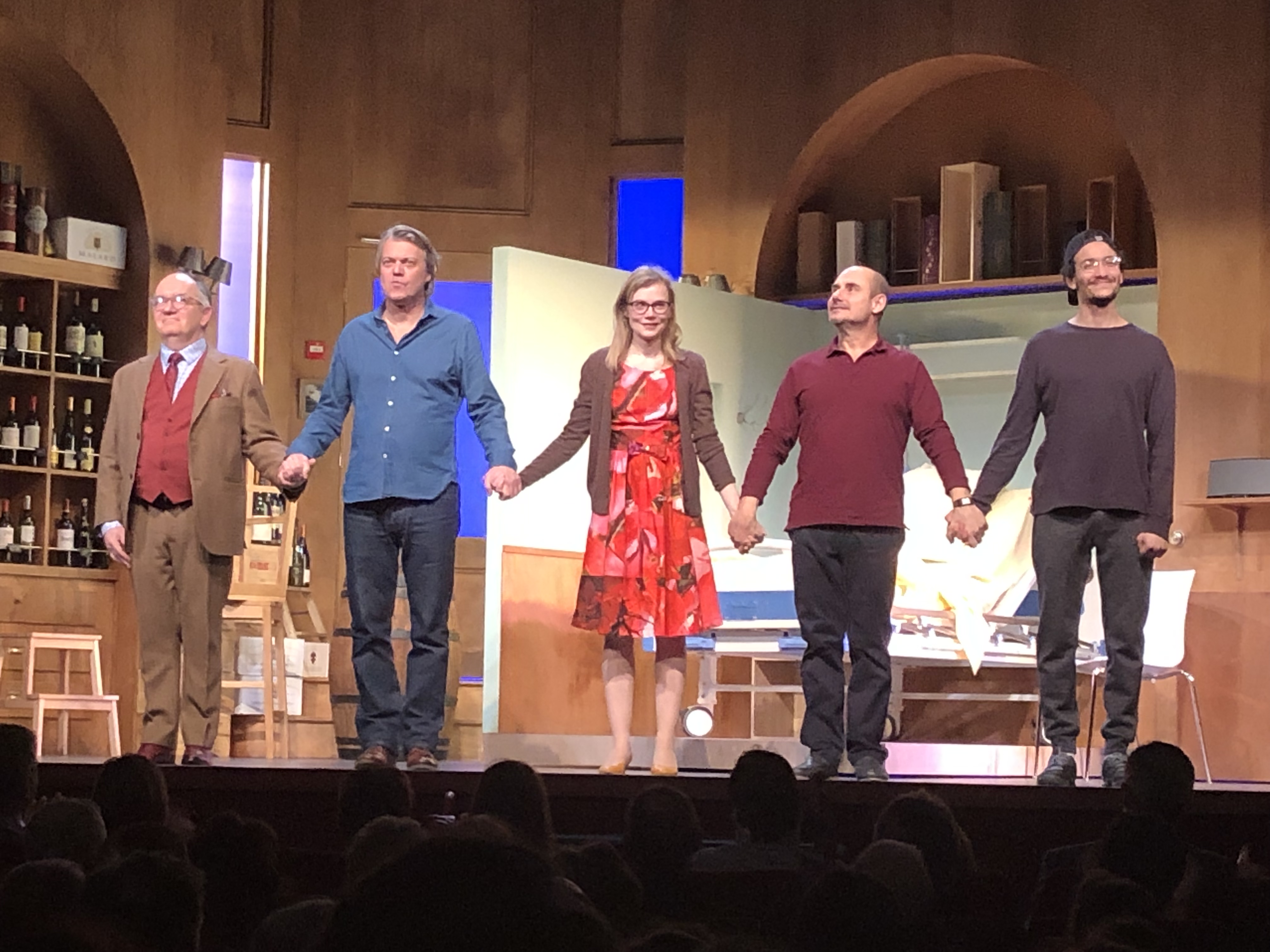 Mon Avis : Ivan Calberac a ce talent d’écrire de belles pièces, aussi drôles que touchantes en y incorporant des sujets de société; ici la réinsertion,le deuil d’un enfant et la PMA entre autres. Ici il nous offre une belle petite comédie romantique; avec une mise en scène simple mais amplement suffisante pour l’histoire. Du côté de la distribution, elle correspond très bien à l’idée que ce faisait Ivan Calberac en imaginant ces personnages. Le Duo formé par Isabelle Carré et Bernard Campan est juste parfait et m’a rappelé le film Se Souvenir Des Belles Choses de Zabou Breitman dans lequel ils partageaient déjà l’affiche. Ce que je trouve parfait dans leur duo tient en une seule phrase : « Les Opposés s’attirent ». En effet leur caractère (enfin ceux de leur personnage bien sûr) sont diamétralement opposés : lui est un caviste bourru,froid et assez égoïste;alors qu’elle est une jeune femme très extravertie et qui pense tout le temps aux autres et aux miséreux, allant jusqu’à leur faire des dîners et leur offrir un vin d’une forte somme; et cet affrontement de caractères va donner lieu à de belles répliques et à des moments très drôles, mais aussi très émouvants. Une Mention spéciale pour Mounir Amamra qui est juste excellent dans son personnage et qui fait rire le public à chaque réplique. Il est vraiment très bon dans son rôle et promet de belles choses; autant au théâtre qu’au cinéma. Éric Viellard est très drôle dans son personnage de libraire,ami de Jacques, dragueur invétéré et maladroit (il m’a fait penser au rôle qu’il jouait dans la pièce de Bernard Slade Un Drôle De Père; avec Michel Leeb); et Olivier Claverie joue avec simplicité et sobriété le médecin et client de la cave de Jacques, ce qui accentue les rires lors de ses échanges avec son patient; toujours dans le principe de comique d’opposition. En fait c’est un peu le principe de base de la pièce d’Ivan Calberac; jouer sur le comique d’opposition avec les caractères de tout ces personnages et avec les clichés, mais sans pousser l’humour trop loin et en restant dans la sobriété et l’émotion.
