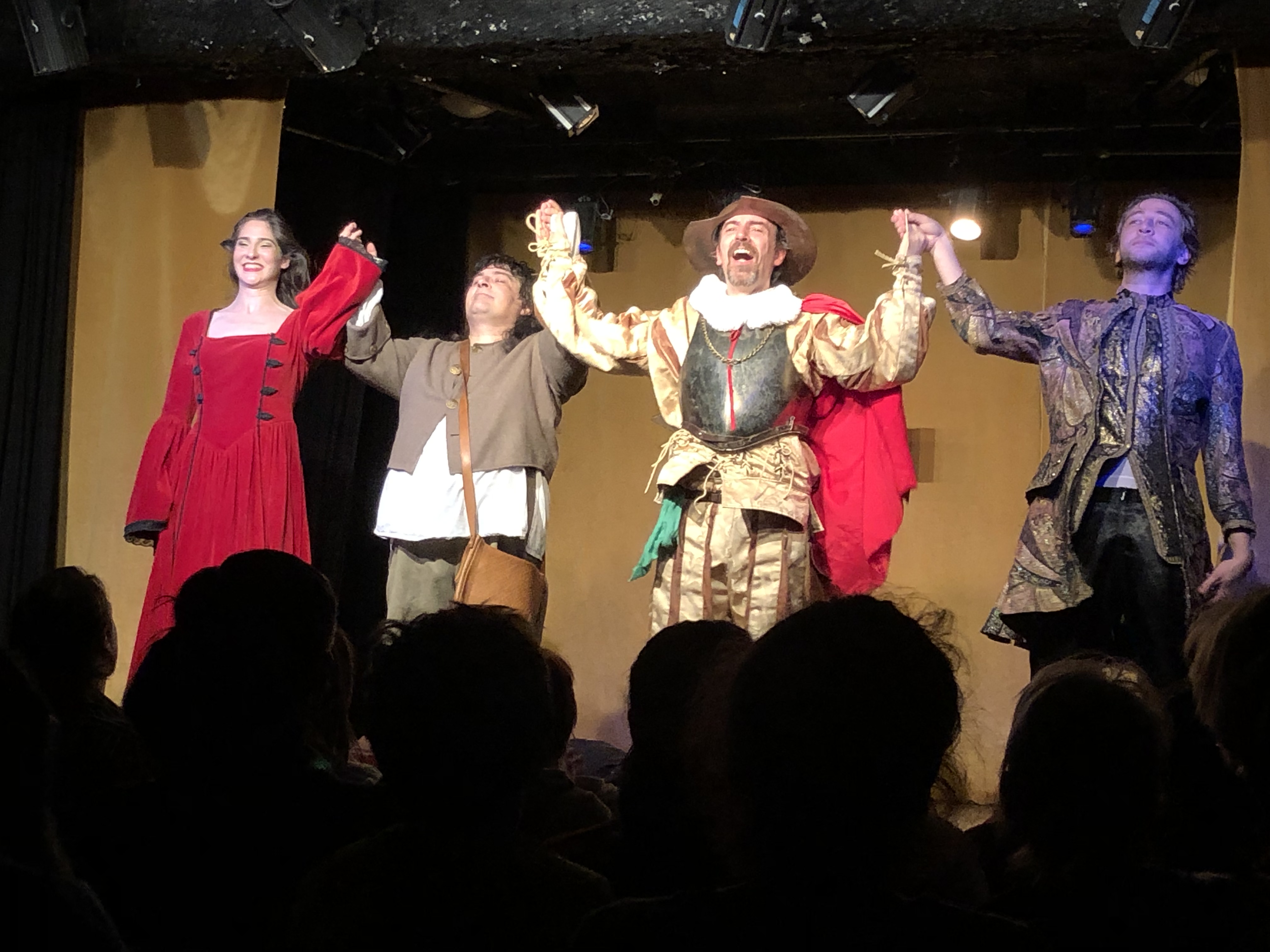 Souvenez vous qu’à mes débuts en tant que blogueur je vous avais parlé d’une pièce : Les 3 Mousquetaires. Et Bien de cette même troupe; je vais vous parler d’une autre pièce, antérieure à celle dont je vous ai parlé, et dont j’ai assisté à la dernière il y’a quelques jours : Don Quichotte…Ou Presque. Cette pièce, adapté du roman de Cervantes par Francisca Rosell et interprétée par Bruno Argence, Noam Cartozo, Philippe Colo et Francisca Rosell , a passé plusieurs mois à La Comédie Saint-Michel ainsi qu’en tournée, et sera cet été au Festival Off D’Avignon et en tournée partout en France en attendant le Festival.