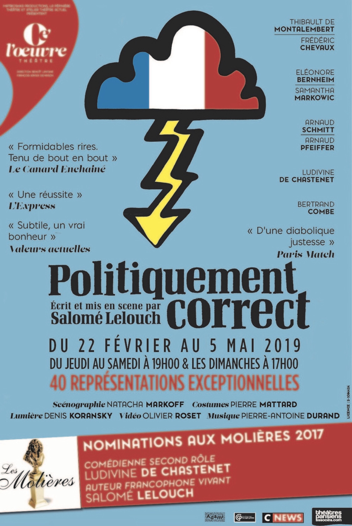 « Politiquement Correct » de Et Mise en Scène par Salomé Lelouch; avec (En Alternance) : Eléonore Bernheim,Thibault de Montalembert, Ludivine De Chastenet, Bertrand Combe, Arnaud Pfeiffer, Samantha Markowic, Frédéric Chevaux et Arnaud Schmitt. Au Théâtre De L’Oeuvre jusqu’au 5 Mai, Du Jeudi au Samedi à 19h et Les Dimanches à 17h.