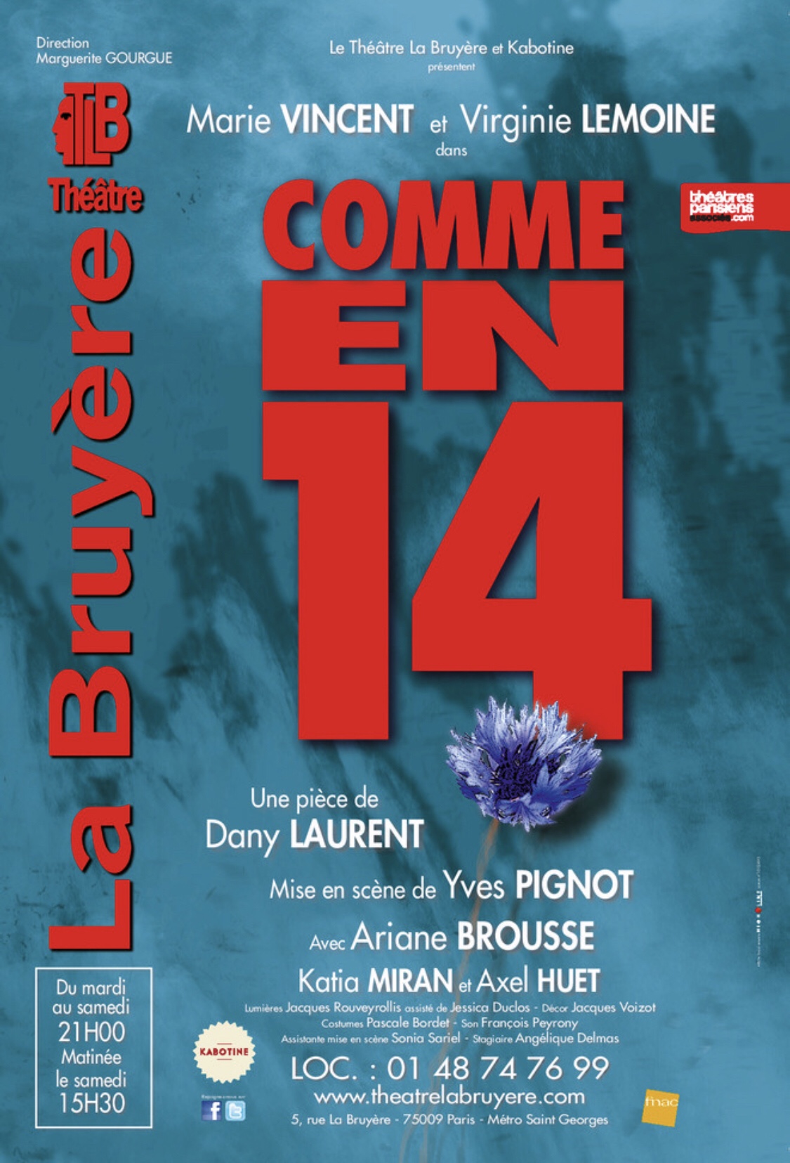Réservation : http://www.theatrelabruyere.com/spectacle/comme-en-14/