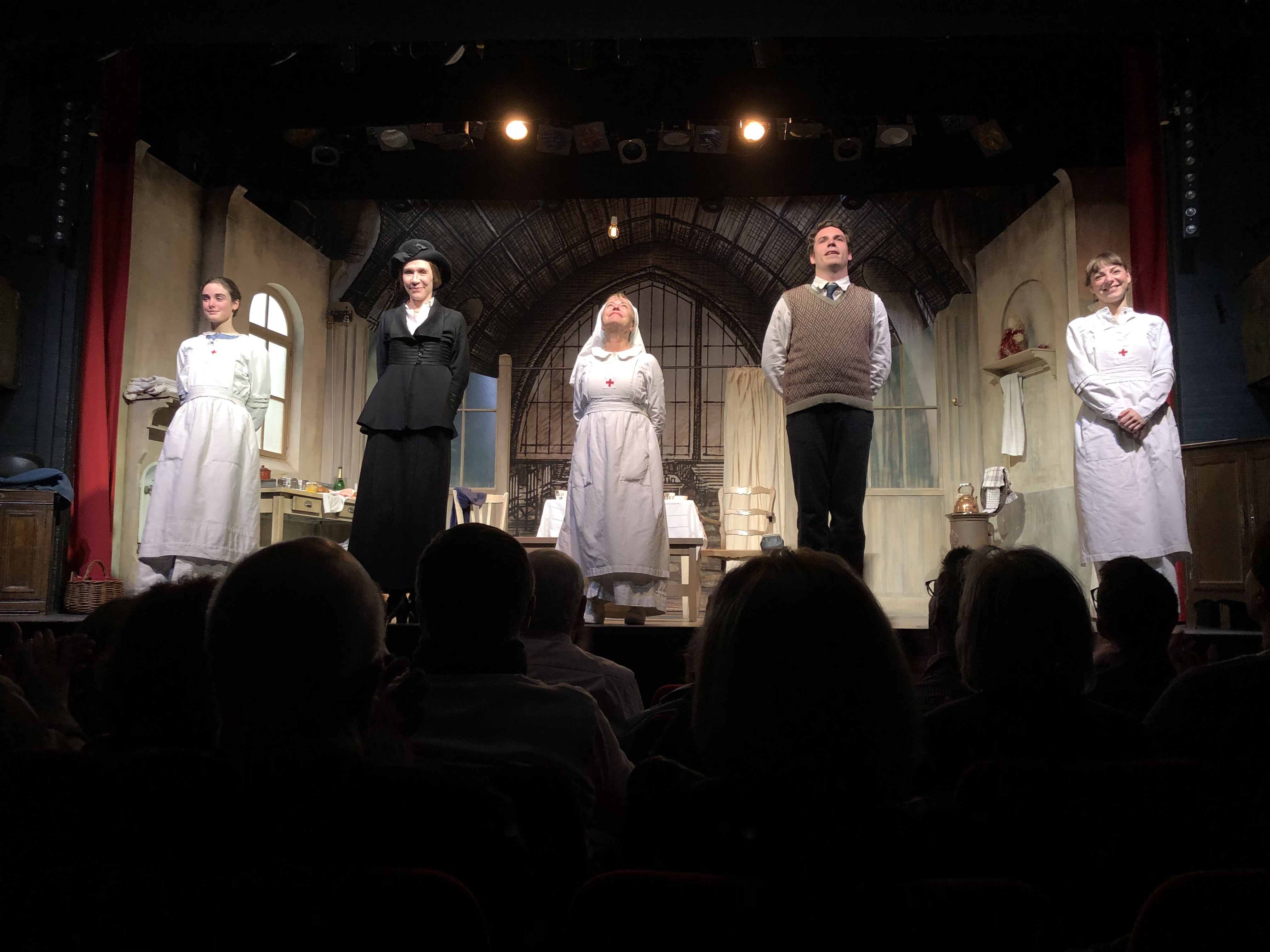 Mon Avis : Cette pièce, rendant un bel hommage à ces femmes que l’on surnommait « Les Anges Blancs »; est tout simplement Belle. Dany Laurent réussit avec talent et douceur à créer cette belle histoire et créer des personnages extrêmement touchants et drôles aussi pour raconter les rêves et les désirs de chacun, le tout en y incluant quelques chansons d’époque. La mise en scène d’Yves Pignot et belle et entière;avec un décor qui dans les moindres détails est autant acteur que les comédiens eux mêmes, ainsi qu’une direction d’acteurs que l’on sent très millimétrée bien sûr mais aussi très profonde, autant dans la vision des caractères de chacun des protagonistes, de leurs liens les uns aux autres et aussi leur Lien et leur vision de la Der Des Der . Et Du côté justement de la distribution; le casting est tout aussi beau que la pièce qu’il interprète. Marie Vincent est une magistrale Marguerite, infirmière en chef vieille fille dont la gouaille et le manque de retenue dans ses paroles m’a fait penser à Arletty dans ses œuvres. Virginie Lemoine nous offre une Adrienne très austère mais qui aimerait bien être aussi « libre » que son amie d’enfance Marguerite; et c’est son côté austère et retenue, en opposition au personnage de Marie Vincent, qui la rend très drôle mais aussi très détestable au fil de la pièce. Arianne Brousse est une belle Suzy, élément perturbateur de tout ce petit monde; que ce soit du côté de Marguerite avec ses idées pacifistes, de la famille d’Adrienne par sa relation avec le fils aîné; et même avec Louise (Katia Miran) en l’entraînant dans ses idées révolutionnaires . Katia Miran est vraiment touchante en infirmière bénévole très fragile et qui ne rêve que de voir la guerre se terminer et revoir son fiancé revenir. Axel Huet m’a étonné et épaté dans son personnage de jeune garçon légèrement retardé, mal aimé par sa mère et plus aimé par Marguerite et les autres Anges Blancs.