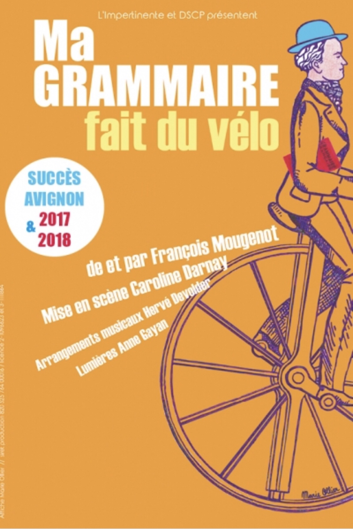 Aujourd’hui je vais parler d’un spectacle que j’ai eu l’occasion de découvrir au Théâtre De L’Essaïon. Il s’agit d’un seul en scène intitulé « Ma Grammaire Fait Du Vélo » écrit et interprété par François Mougenot; mis en scène par Caroline Darnay.