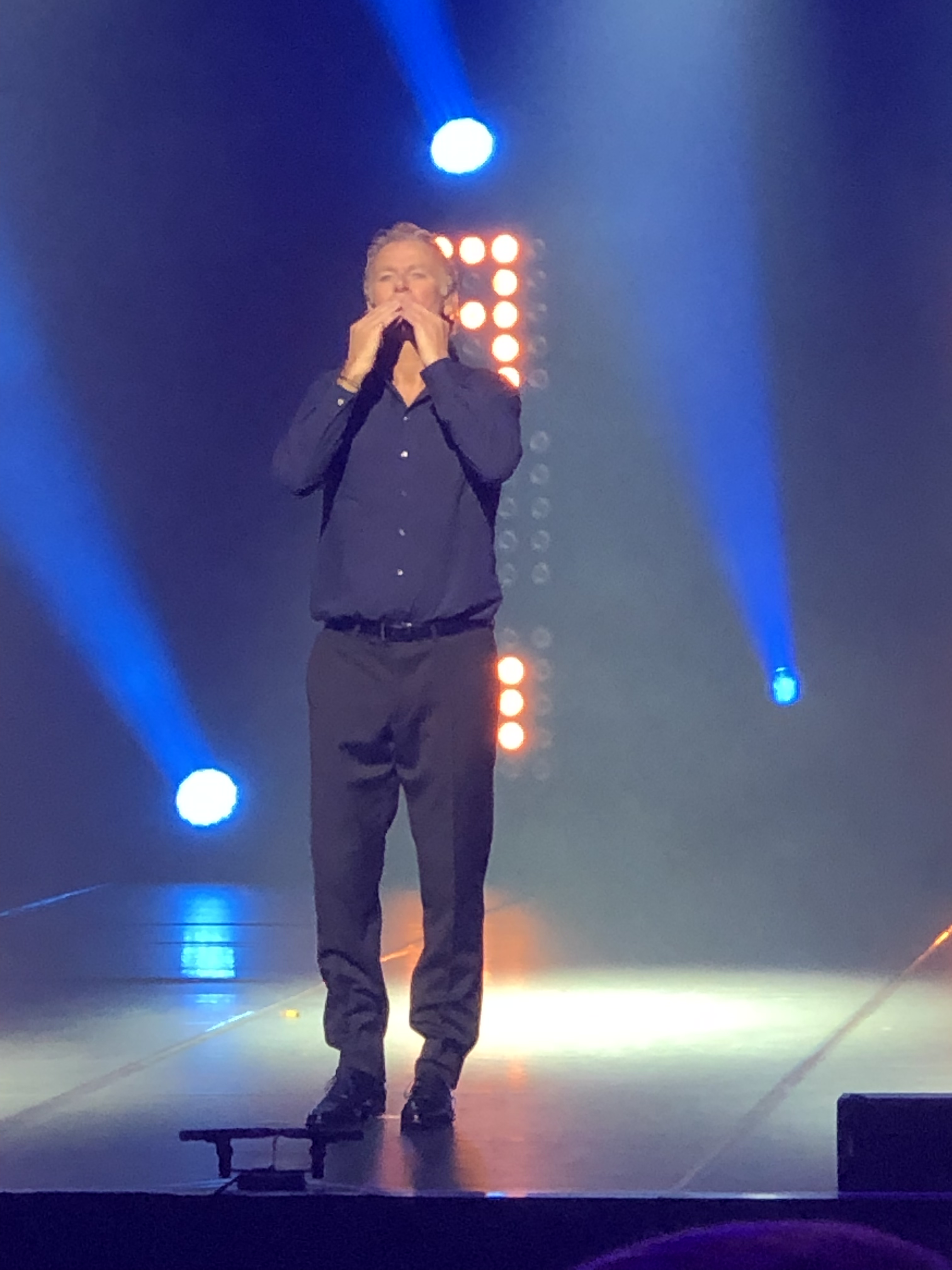 Dans ce nouveau spectacle; exit le séducteur !! Franck Dubosc nous raconte (a sa manière) sa vie de quinquagénaire, ainsi que sa vie de famille. Fini les inquiétudes du dragueur raconteur de belles histoires; aujourd’hui ce sont les inquiétudes des hommes de 50 ans qui germent dans sa tête. De sa relation avec ses enfants en passant par ses rendez vous chez le médecin, Franck Dubosc nous livre d’une manière drôle et aussi touchante la prise d’âge et l’inquiétude de vieillir; ainsi que la vie de parent mais aussi ce qu’il aurait du faire dans son adolescence et qui aura des répercussions sur sa vie d’adulte. Ses sketchs sont très drôles, certains un peu trop poussif (notamment celui qui se passe à l’intérieur de Lui, qui a vraiment eu du mal à me faire ne serait ce qu’esquisser un sourire); mais en majeure partie, on rit à gorges déployées durant 2h non stop. On est aussi très émus et touchés à certains moments, notamment lorsqu’il parle du fait que l’on ne dit plus assez « Je t’aime » à sa compagne; Mais aussi lors de son final où il nous lit une lettre écrite pour son Lui à 15 ans. D’ailleurs je trouve qu’il pourrait même aller plus loin dans cette lettre, pour prouver encore plus qu’il peut vraiment émouvoir autant que pleurer…de rire 😉