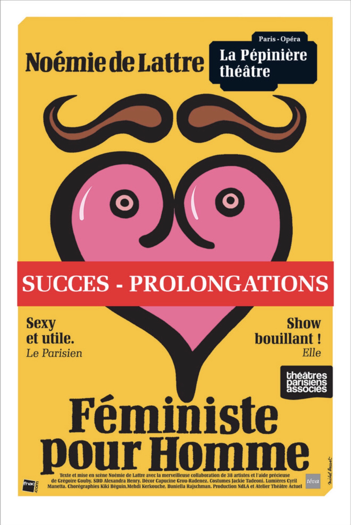 Succès oblige (et amplement mérité); Noémie De Lattre prolonge son séjour à la Pépinière jusqu’au 18 Mai. Que vous soyez Femme ou Homme, vous devez allez découvrir ce spectacle; que l’on peut considérer comme une belle leçon de vie, de vivre ensemble, et de respect pour tous.