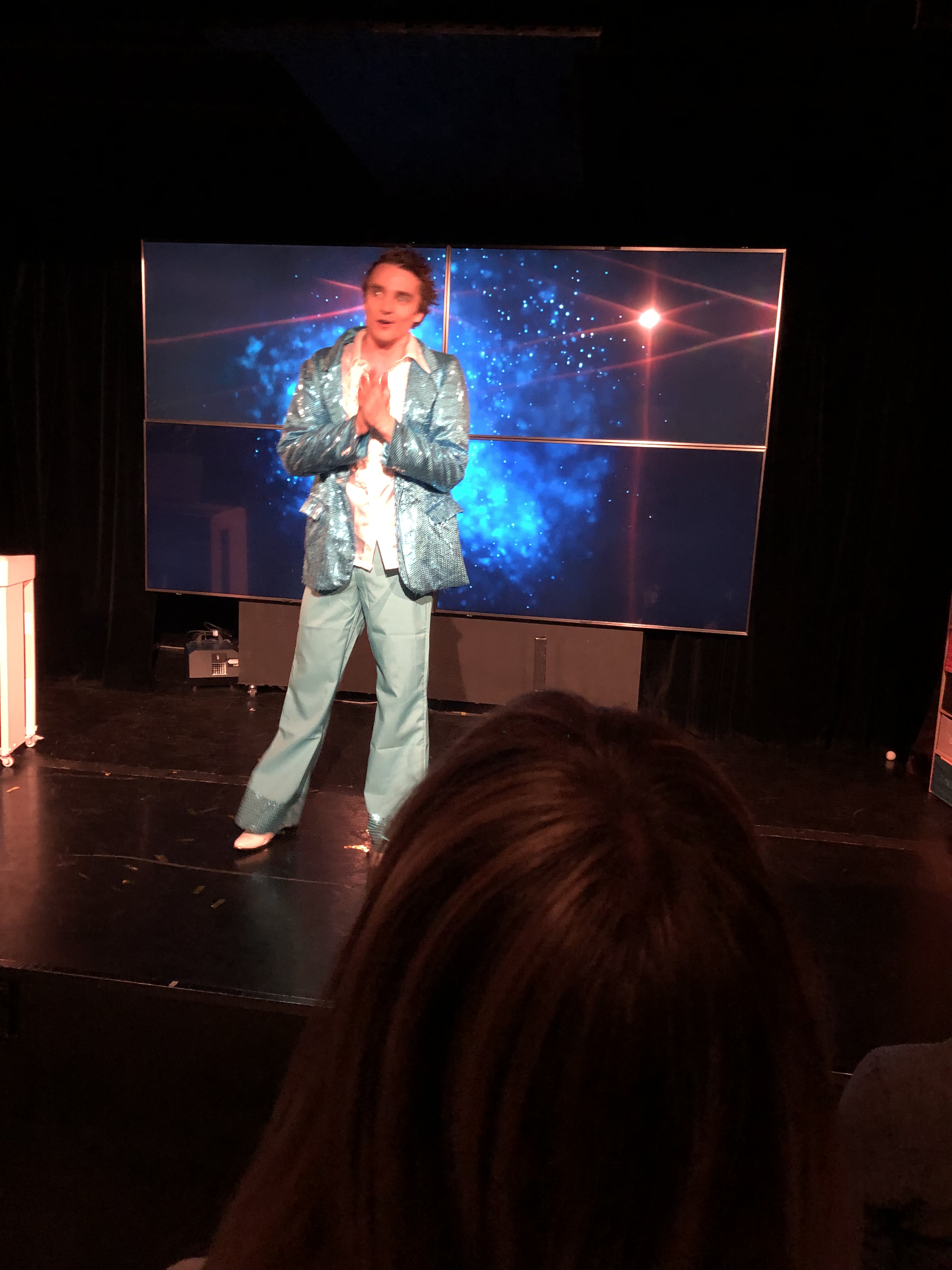 Pour ce que j’ai vu ce soir là; je ne peux que saluer l’idée extravagante et délirante du metteur en scène Alex Goude et la performance extraordinaire d’Adri1. C’est un véritable show non stop; et ce qui m’a épaté dès le début, c’est la voix d’Adri1 que je ne connaissais pas auparavant. Ce garçon a une voix magnifique, douce et cristalline; et il transmet avec tant de facilité les émotions dégageant des chansons au public qu’il a en face de lui, qu’il est autant talentueux que performant. Et pour en revenir au public justement; il n’est pas que maître du show, il en aussi acteur à plusieurs reprises. L’alchimie des ces 2 messieurs (Adri1 et Alex) et cette « écriture » à 4 mains, avec des idées dignes des fois des cartoons, le captivent et font redevenir les spectateurs durant tout le long comme de grands enfants, s’amusant à donner à Adri1 les costumes et les défis les plus fous qu’ils soient…
