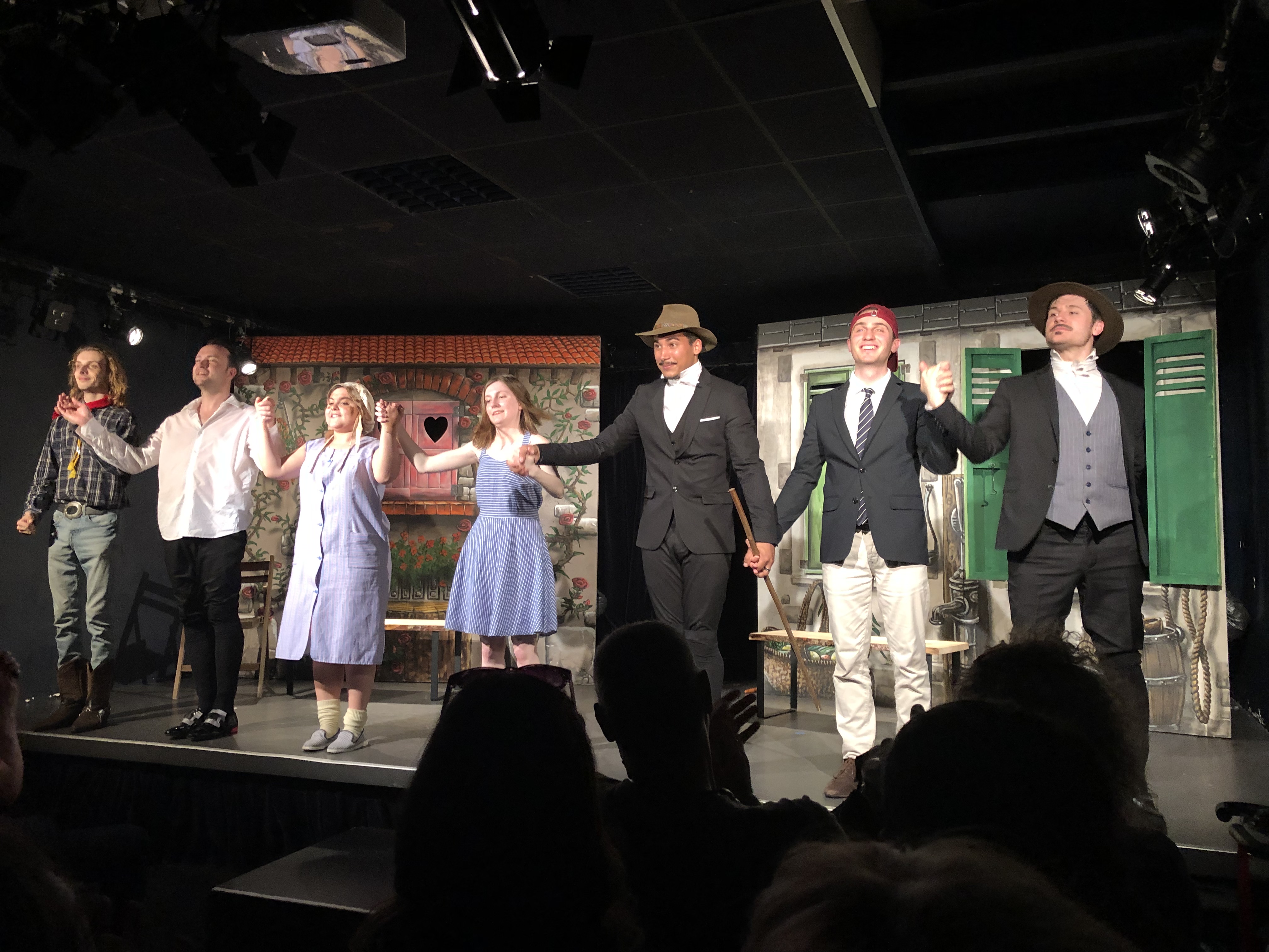 Et sans parler de cette distribution aussi belle qu’hétéroclite qui dynamise et donne aussi un côté farfelu et burlesque à la pièce de Molière. Tous sans aucune exception apporte leur pierre à ce bel et drôle d’édifice : Vincent Cordier incarne un Arnolphe plus jeune mais hilarant à souhaits; avec sa fourberie et ses mimiques, il est comme un mélange de Pierre Vernier (les fans de Belmondo me comprendront 😉) et de Louis De Funès; Méghane Sardin nous offre une magnifique Agnès, tout en innocence et sincérité; Maxime Soulier est un Horace mélange de jeune premier de Shakespeare et de comédie romantique de notre époque; Drys Penthier est une drôle de bonne conscience et de donneur de leçon aux yeux de son ami Arnolphe; Thomas Soler et Olivera Trajkovic incarnent, dans la pure tradition de comedia Dell’arte et de la clownerie, le couple de serviteurs dignes de la campagne profonde, avec tenue, accent et comportement adéquate; ce qui rend leurs apparitions aussi drôles car clownesque; et Axel Kurdzielewicz est drôle sans rien faire de spécifique, qu’il joue un notaire ou un homme revenant des Amériques (en cowboy et avec un accent digne des soap-opera); il est naturellement drôle par sa carrure, sa dégaine et son phrasé.
