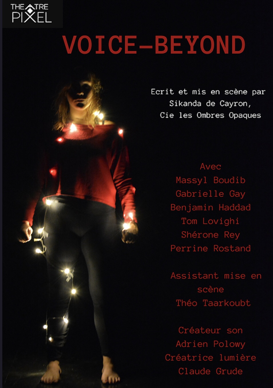 « Voice-Beyond » de Et mise en scène par Sikanda De Cayron; par la Compagnie Les Ombres Opaques : Gabrielle Gay, Perrine Rostand, Shérone Rey, Tom Lovighi, Benjamin Haddad et Massyl Boudib. Au Théâtre Pixel Les Dimanches 9 et 16 Juin à 19h