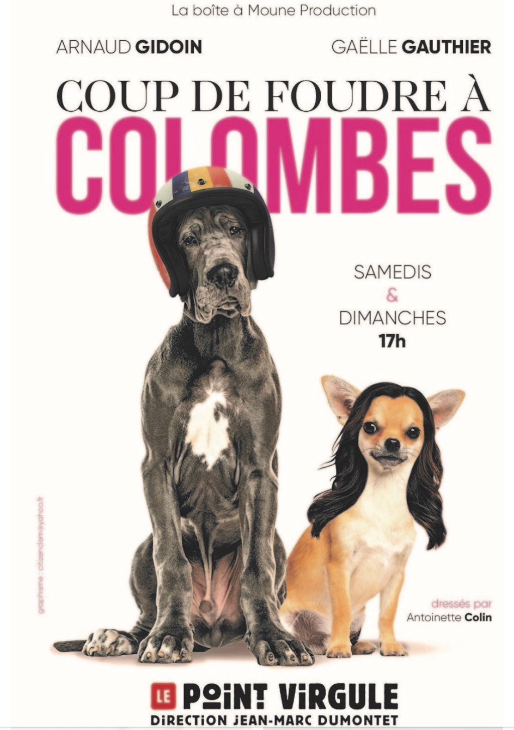« Coup De Foudre à Colombes » de Gaëlle Gauthier et Arnaud Gidoin; Mise en Scène d’Antoinette Colin. Au Point-Virgule jusqu’au 1er Septembre; Les Samedis et Dimanches à 17h.