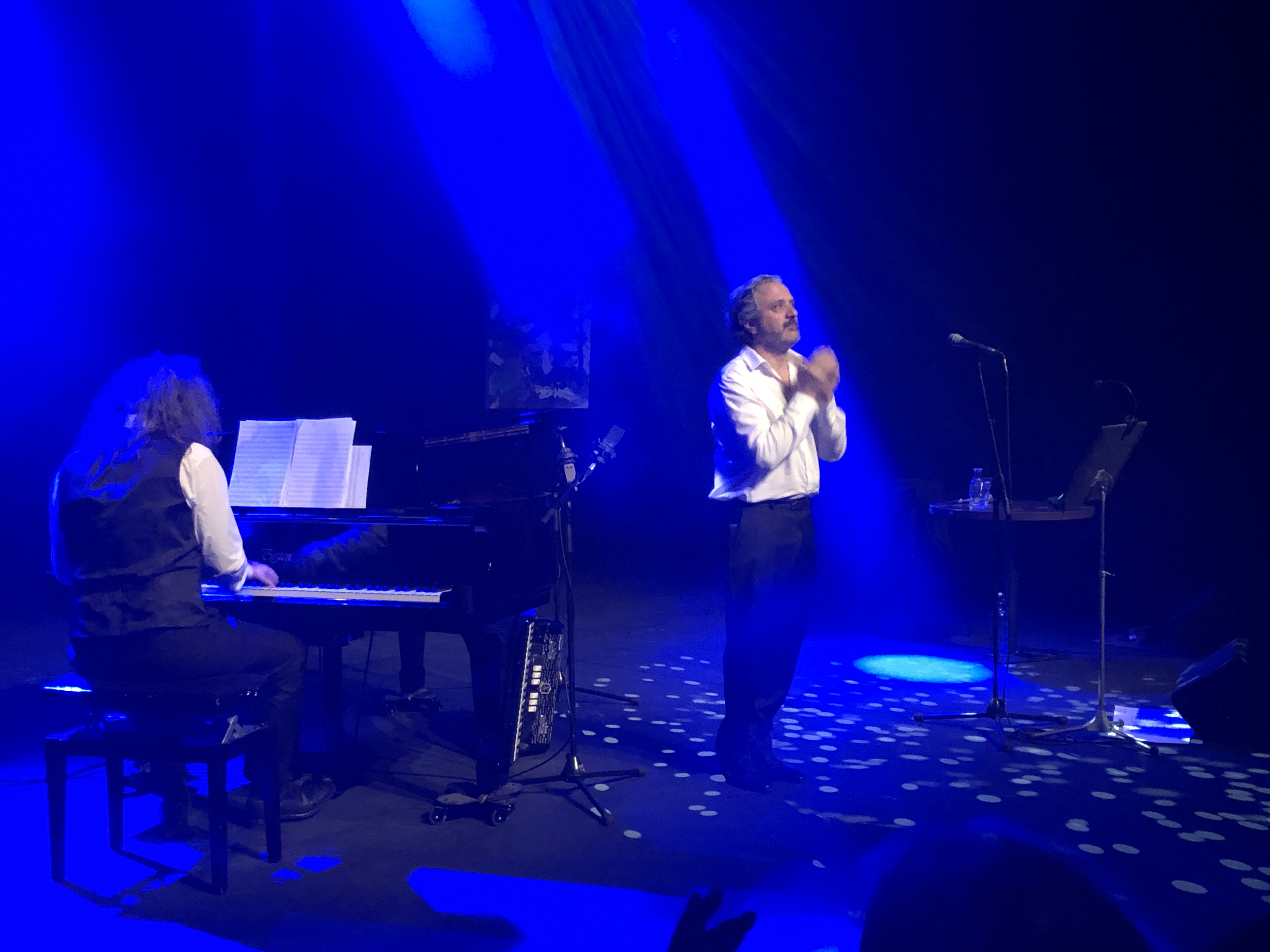 Le temps d’un récital; Éric Laugerias, accompagné par Simon Fache, fait revivre le mythique et les œuvres du grand Serge Reggiani en 2 spectacles ! Car bien entendu, il est très difficile de choisir 20 chansons de ce grand Monsieur; alors Judith D’Aleazzo et Éric Laugerias ont décidé de faire 2 spectacles avec des chansons différentes selon le jour, pair ou impair. Le jour de ma venue, j’ai eu le plaisir de découvrir et redécouvrir des petites perles; magnifiquement interprétées par Monsieur Eric Laugerias. De grands classiques comme L’Italien ou Votre Fille à Vingt Ans, ou des moins « célèbres » tel que Et Moi je peins ma Vie, Si Tu Me payes un verre ou Le Déjeuner Au Soleil; On est transportés par les paroles et les mélodies intemporelles de ces magnifiques chansons sur lesquelles on repense à la voix mythique de ce grand Monsieur qu’était Serge Reggiani. Un immense Bravo à Éric Laugerias qui, en plus de son talent de comédien reconnu de tous, nous interprète ces chansons et les fait vivre avec sa voix avec un talent indiscutable et une intensité simplement sublime.