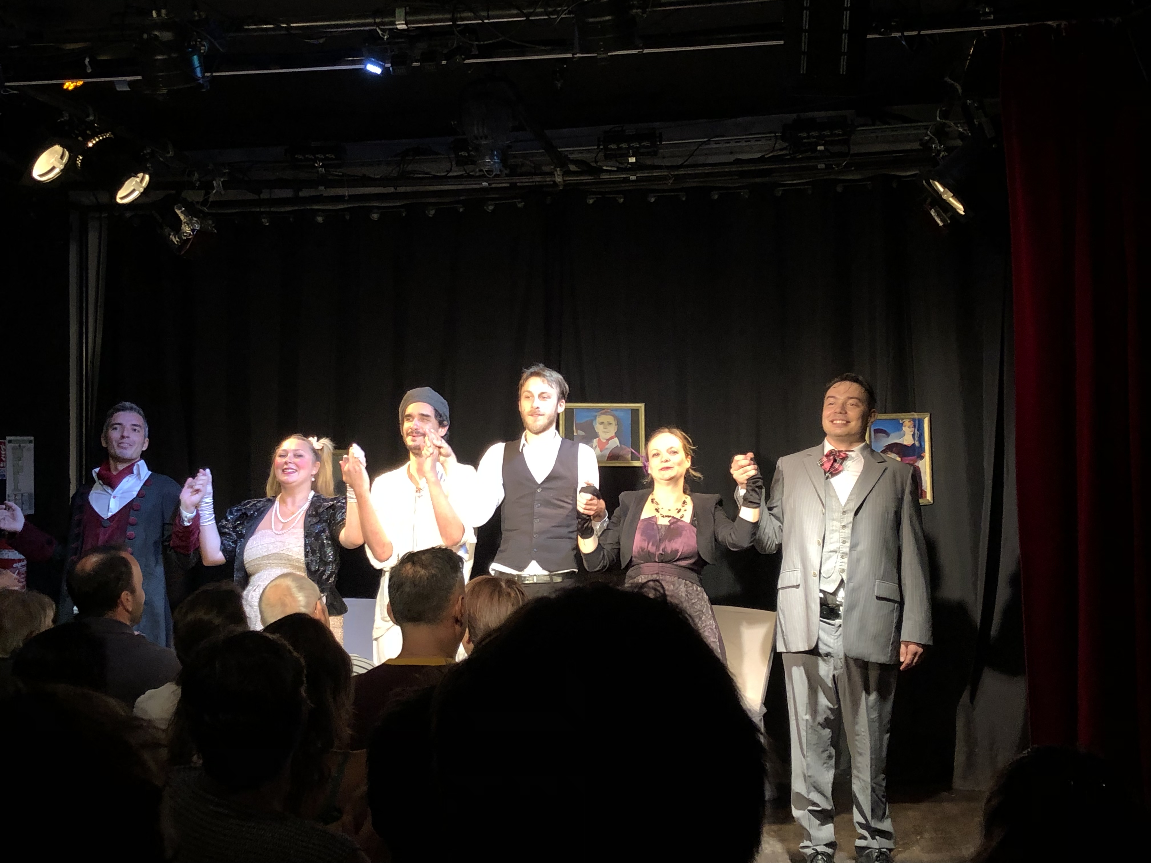 Mon Avis : On ne peut que saluer et féliciter la prouesse de la compagnie Saynète et Sans Bavure d’avoir rendu ce classique de Feydeau (assez méconnues comparé à certaines autres de ses pièces) encore plus délirant qu’à l’origine. La Nous sommes vraiment dans le domaine du burlesque; nous pouvons même dire du clownesque car le rire vient autant du texte que de la mise en scène et des mimiques des comédiens. Drôle d’idée (et idée drôle aussi) d’avoir incrusté entre certains dialogues des chansons interprétées en playback par les comédiens correspondant a leur caractère ou à La situation à l’instant T; telle une version humoristique du « On Connaît La Chanson » d’Alain Resnais. Les comédiens se donnent à 200% et sont littéralement fous, à tel point que l’on l’impression des fois d’être face à la cour d’un asile psychiatrique !