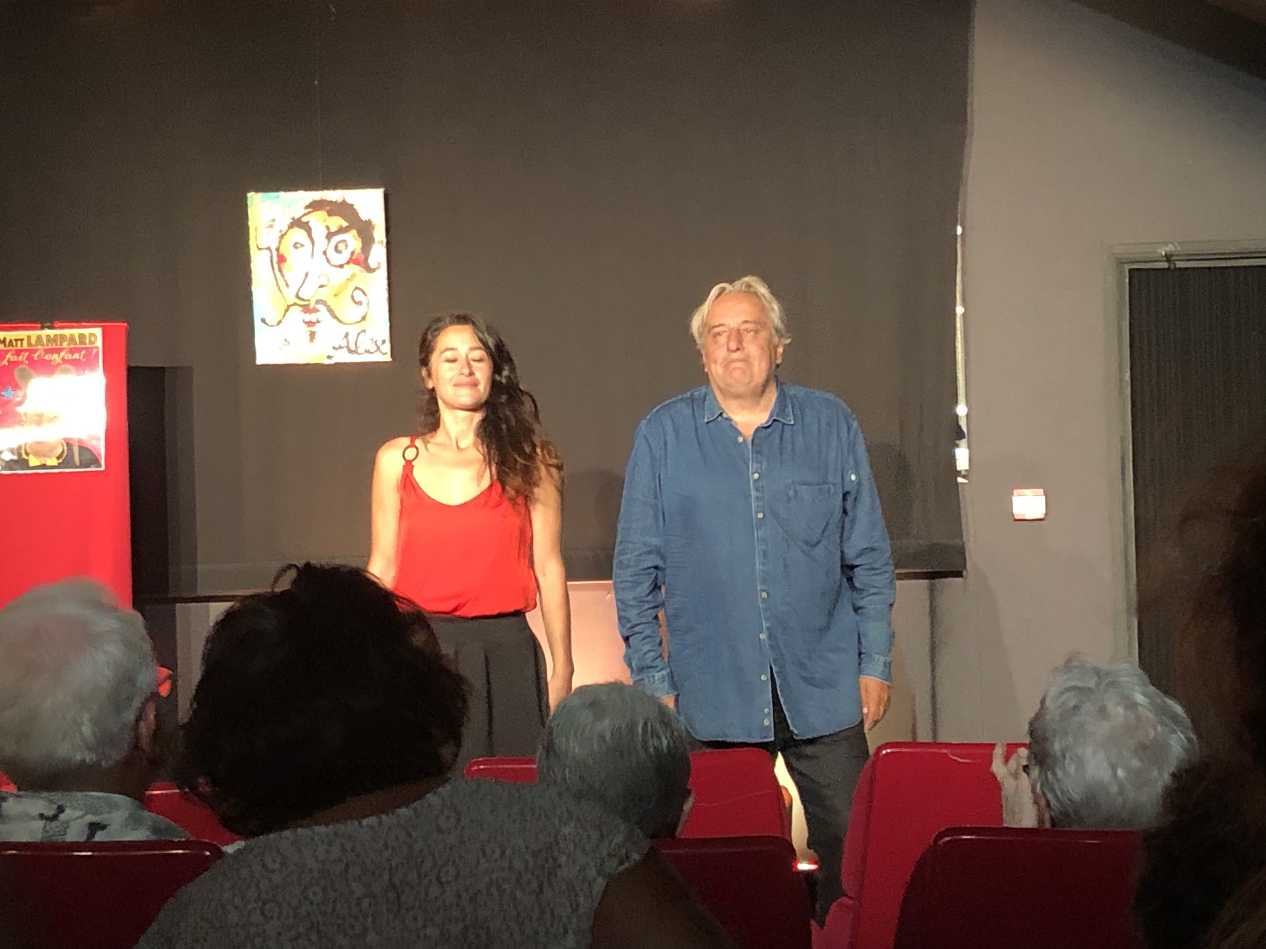 Mon Avis : Malgré que le cadre et le lieu ne soit pas très adéquat pour accueillir une pièce de théâtre; ce fut un réel plaisir de retrouver sur scène Les saillies et les bons (et acides) mots de Jean-Jacques Devaux qui sont mieux que le bon vin : ils ne vieillissent pas avec le temps; même après des centaines de représentations partout en France. Avec une mise en scène simple et sans chichi (un paravent, un canapé et un miroir de loge d’artiste), on passe 1h20 à rire et à se délecter de cette joute verbale entre un artiste cynique et narquois et sa femme prof désespérée et délaissée (et peintre à ses heures perdues). Le Duo formé par Jean-Jacques et sa partenaire Manuelle Molinas est un vrai moment de comédie; avec un soupçon de tendresse à la fin, car trop d’humour non stop lasserait assez vite. Ce duo prend autant de plaisir sur scène que nous on a de les voir se déchirer et se balancer des saloperies à la figure.