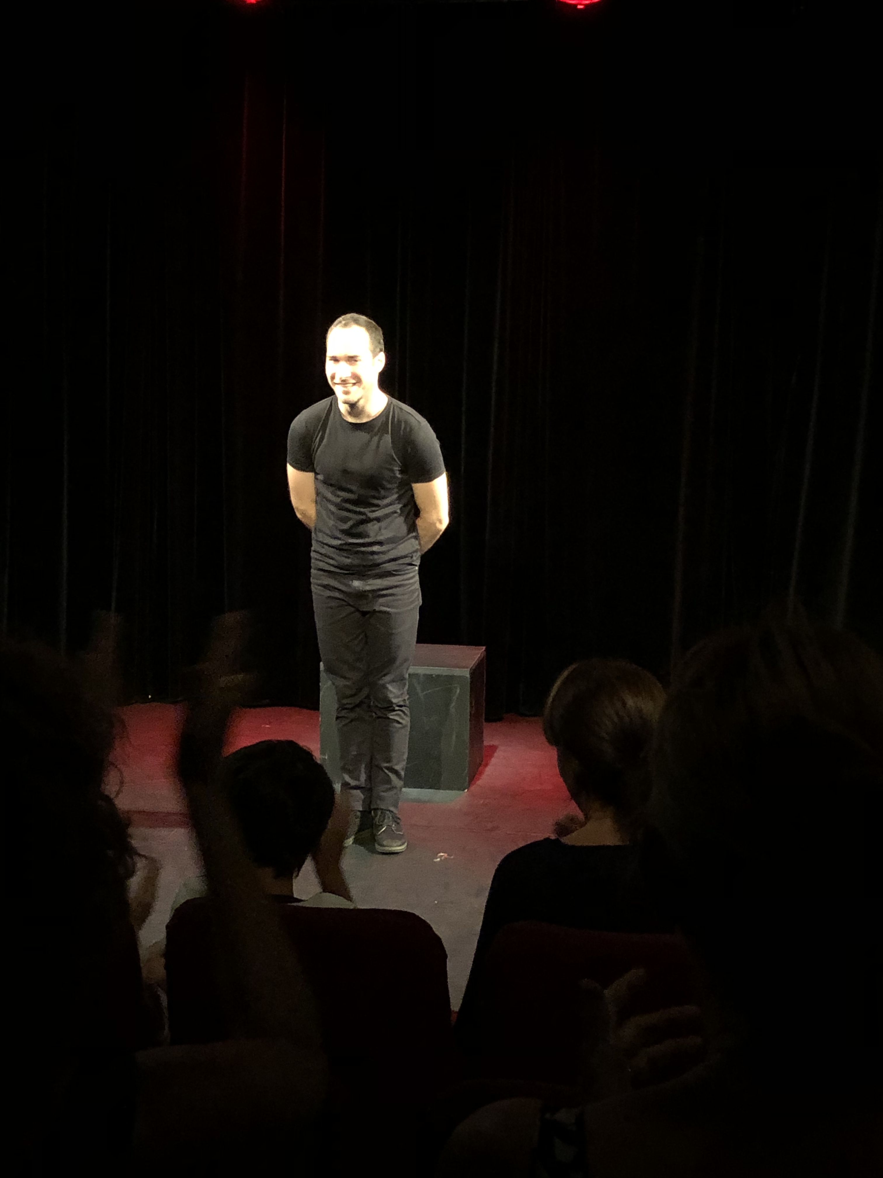 Durant une heure; Camille Prioul nous fait revivre seul sur une scène L’Odyssée, et plus précisément le Mythe d’Ulysse, à travers une trentaine de personnages. Réécrit d’une manière plus moderne et actuel, autant dans le récit que dans le caractère des personnages qu’ils soient Dieux, monstres ou animaux; Camille Prioul nous offre vraiment une véritable performance scénique, en alternant d’une seconde à l’autre une multitude de personnages mythiques. C’est drôle, émouvant, musical et sportif aussi; et pour ce que j’ai vu ce jour là; les petits comme les grands sont captivés par l’Histoire et épatés par la, ou plutôt les performances de Camille durant près d’une heure trente.
