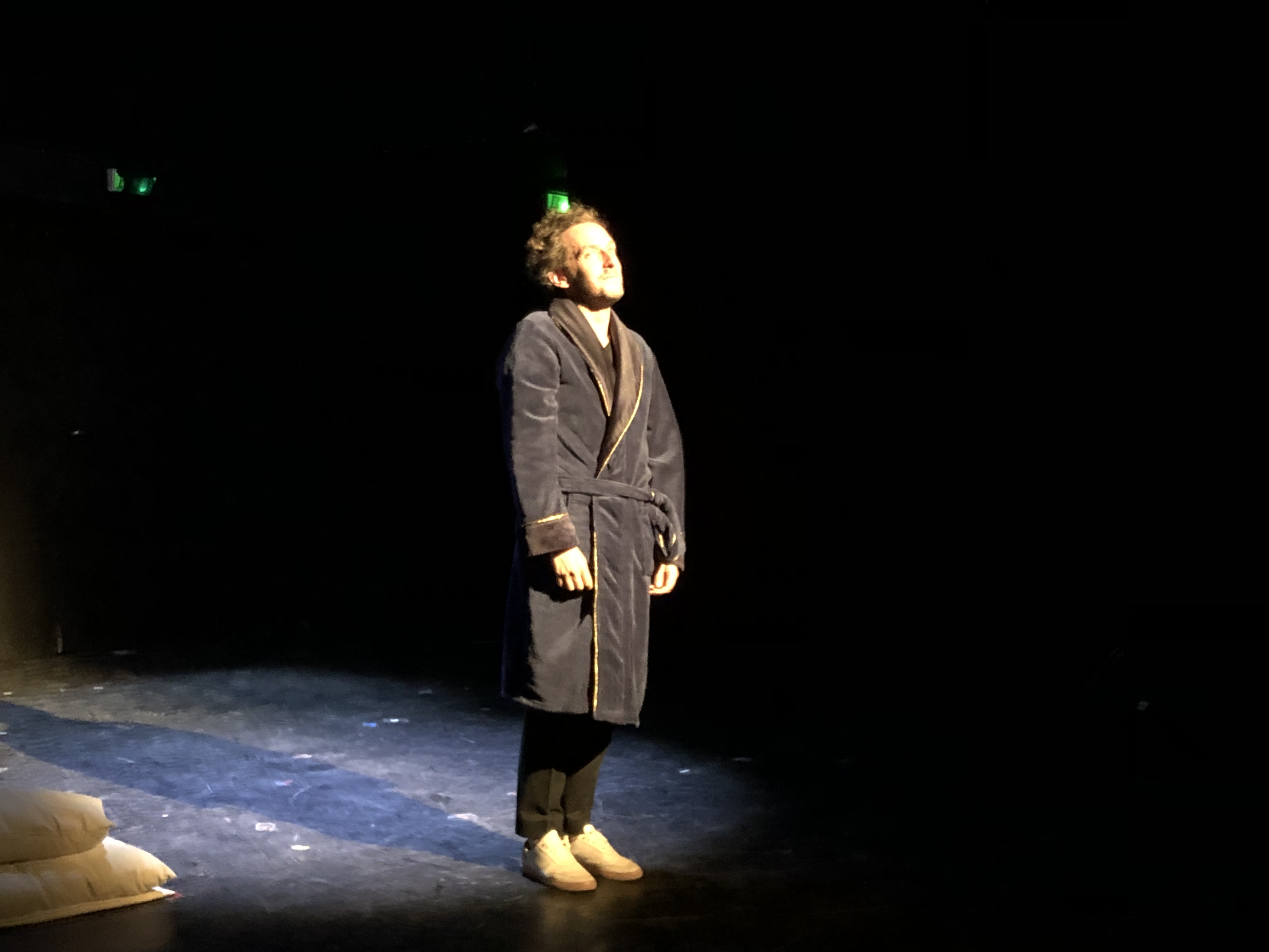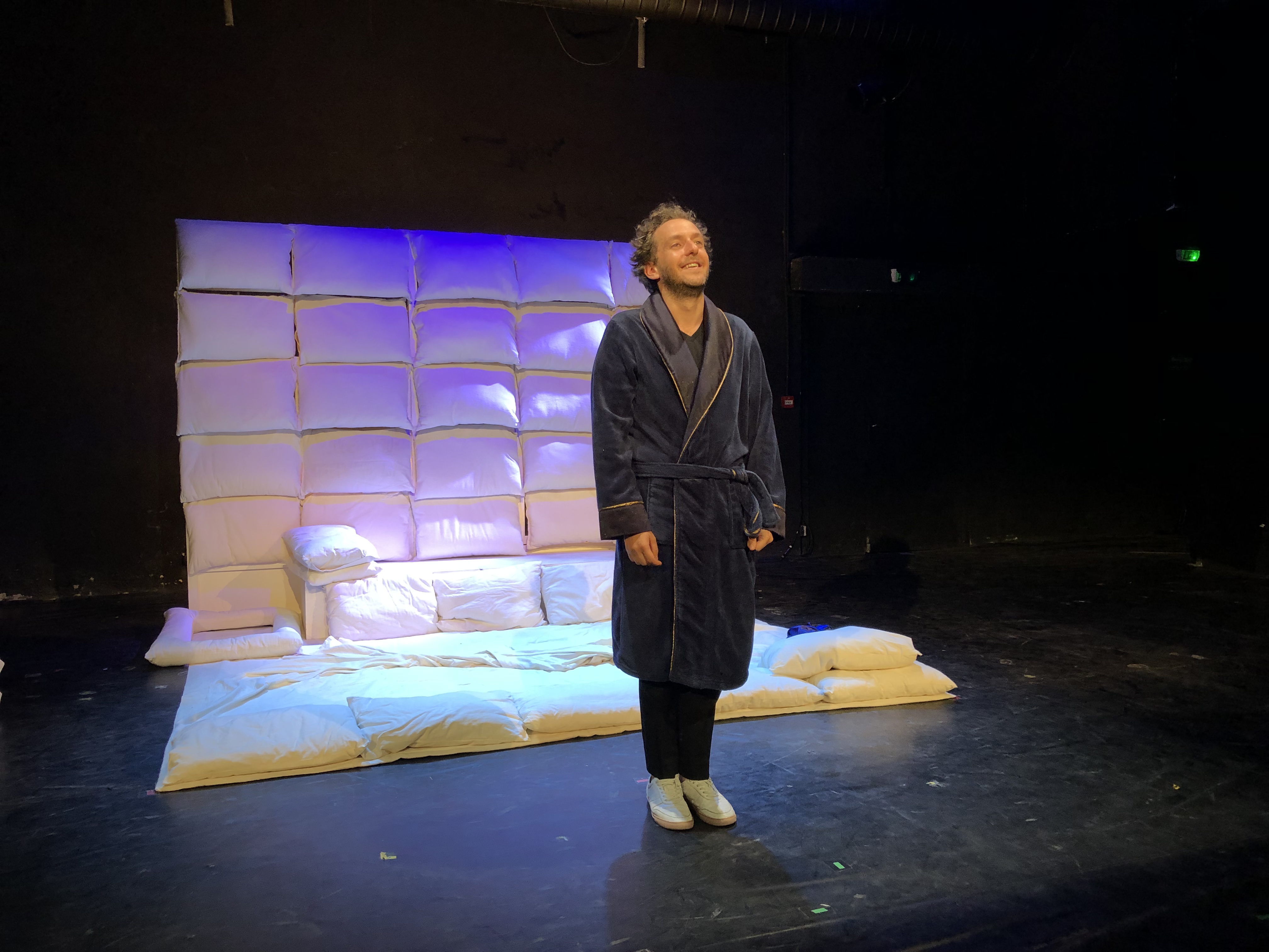Mon Avis : Ayant découvert Michaël Hirsch lors de son premier spectacle, qui mettait déjà la barre très haute sur les leçons de vie et la jonglerie des beaux mots; on pouvait se demander comment pourra t’il faire mieux dans ce spectacle. Et ce que je peux dire; c’est que le défi est amplement réussi avec Je Pionce Donc Je Suis. Non seulement l’histoire, écrite par Michaël et Yvan Calberac est belle et attendrissante; et sur scène Michaël montre encore une fois son talent sans borne en interprétant une vingtaine de personnages qu’Isidore va croiser sur sa route. Dans ce décor amovible tout en coussin et en douceur, on a la sensation d’être dans un rêve ou dans son lit; ajoutez à ça la voix mélodieuse de Michaël (même lorsqu’il imite certaines personnes que vous reconnaîtrez assez facilement 😉) , vous vivez 1h20 de pur humour et douceur…