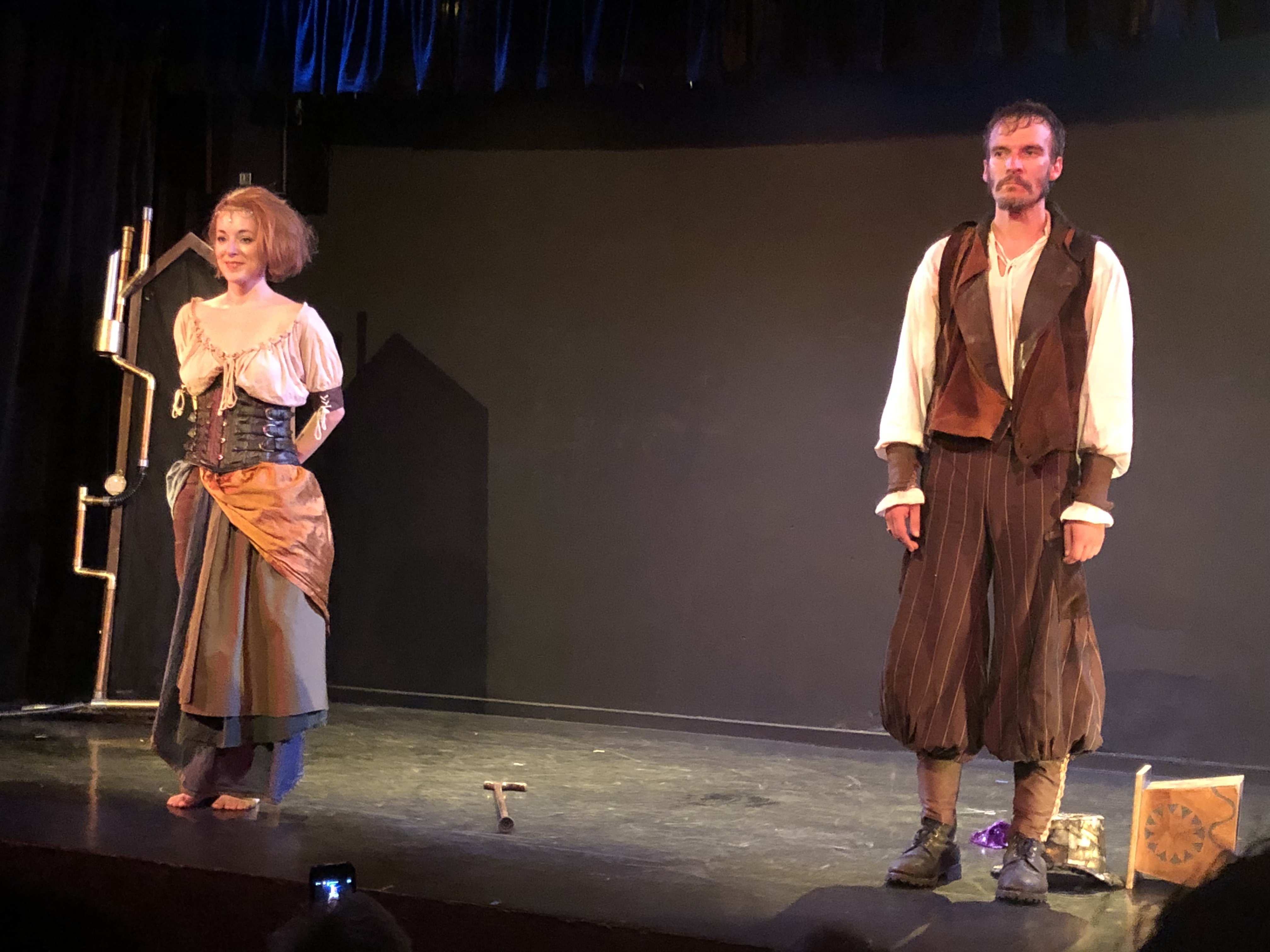 On a l’impression d’assister à une représentation d’un spectacle de rue, interprétées par 2 saltimbanques faisant rêver leur public avec un spectacle fait de bric et de broc ou, certains personnages sont interprétés par…des ustensiles de cuisine !! Et c’est exactement ce qu’il se passe à La Folie Théâtre : On rêve et on vit ! Ce spectacle est une poésie vivante en plus d’un bel hommage à l’œuvre D’Edmond Rostand. Les Décors, les accessoires, et les costumes, tous fabriqués dans un style appelé Steampunk; sont d’une beauté inégalable : on se croirait dans un roman de Jules Verne ou d’heroic-Fantasy ou l’ancien se mélange au moderne et où la vapeur et la mécanique se mélange aux meubles anciens. Tout ceci combiné à une musique dans un style un peu manouche; on se croirait vraiment face à un spectacle de rue à La Belle Époque.