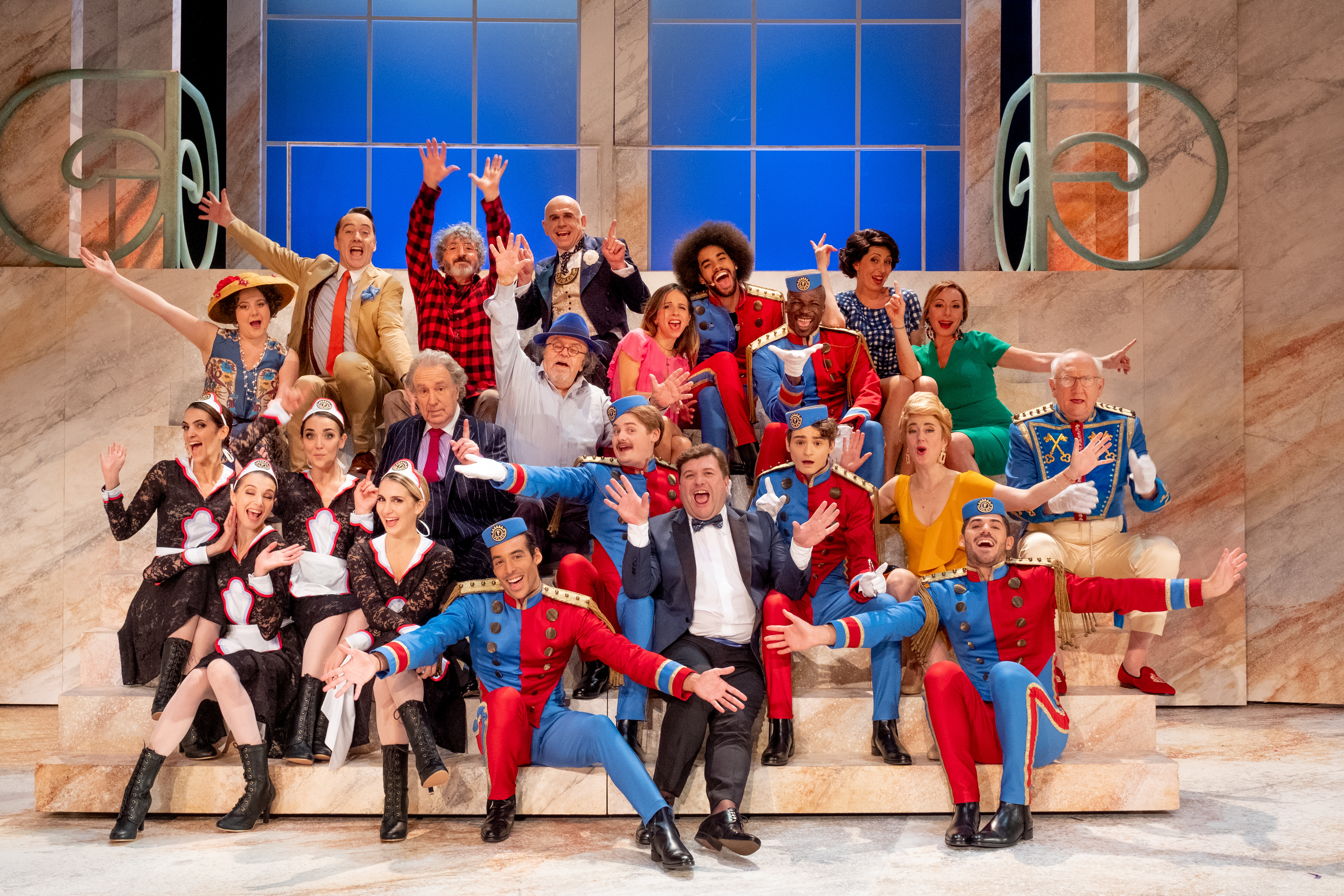 Dans cette pièce, vous retrouverez l’essence même de la série : Le générique qui vous reste en mémoire; ce décalage entre les personnages et ce qu’ils disent et ce qu’ils permettent de faire avec leur argent dans un Palace. Exit certains personnages et certaines séquences tel que le barman et le pilier avec ses Brèves De Comptoir, Exit Le Labo Palace dirigé par Jacqueline Maillan, Les Gardiennes Du Bon Goût avec Leurs Mots a Ne Pas Dire ont le droit à un Petit Clin d’œil. Mais vous retrouverez les fameuses Belles Histoires Du Palace, Le Service Palace, les conseils de John et Talie dans Soyez Palace Chez Vous ainsi que les fameuses réclamations d’App’lez Moi Le Directeur. Ce Palace version 2019 est dirigé par Philippe Vieux, a pour Concierge et Homme Aux Clés D’Or Christian Pereira, une Lady Palace brillamment incarnée par Joséphine De Meaux et une Escouade de Grooms, Femme De Chambre et Clients interprétés par Salim Bagayoko, Salomé Dienis-Meulien,Mikaël Halimi, Magali Lange, Jocelyn Laurent, Philippe Magnan, Karina Marimon, Gwendal Marimoutou, Coline Omasson, Thibaut Orsoni, Simon Parmentier, Alexie Ribes, Rodolphe Sand, Emmanuelle Seguin, Anne-Elodie Sorlin, Alexandra Trovato, Eric Verdin, Ben Akl et Armelle Gerbault.