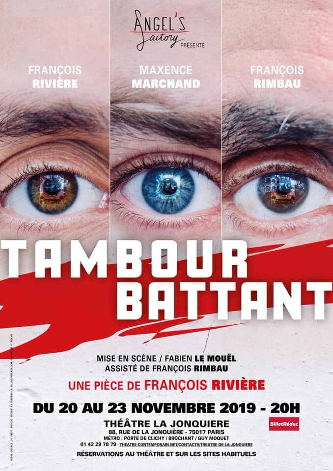 « Tambour Battant » de François Rivière; Mise En Scène de Fabien Le Mouël, avec François Rimbau, Maxence Marchand et François Rivière. Au Théâtre De La Jonquière jusqu’au 23 Novembre à 20h.