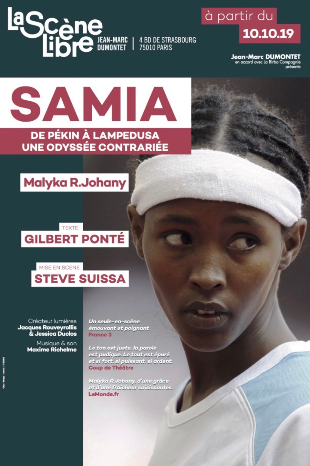 Ce soir je vais vous parler d’une pièce découverte à La Scène Libre. Il s’agit de la pièce Samia : De Pékin à Lampedusa, écrite par Gilbert Ponté, mise en scène par Steve Suissa et interprétée par Malyka R.Johany.