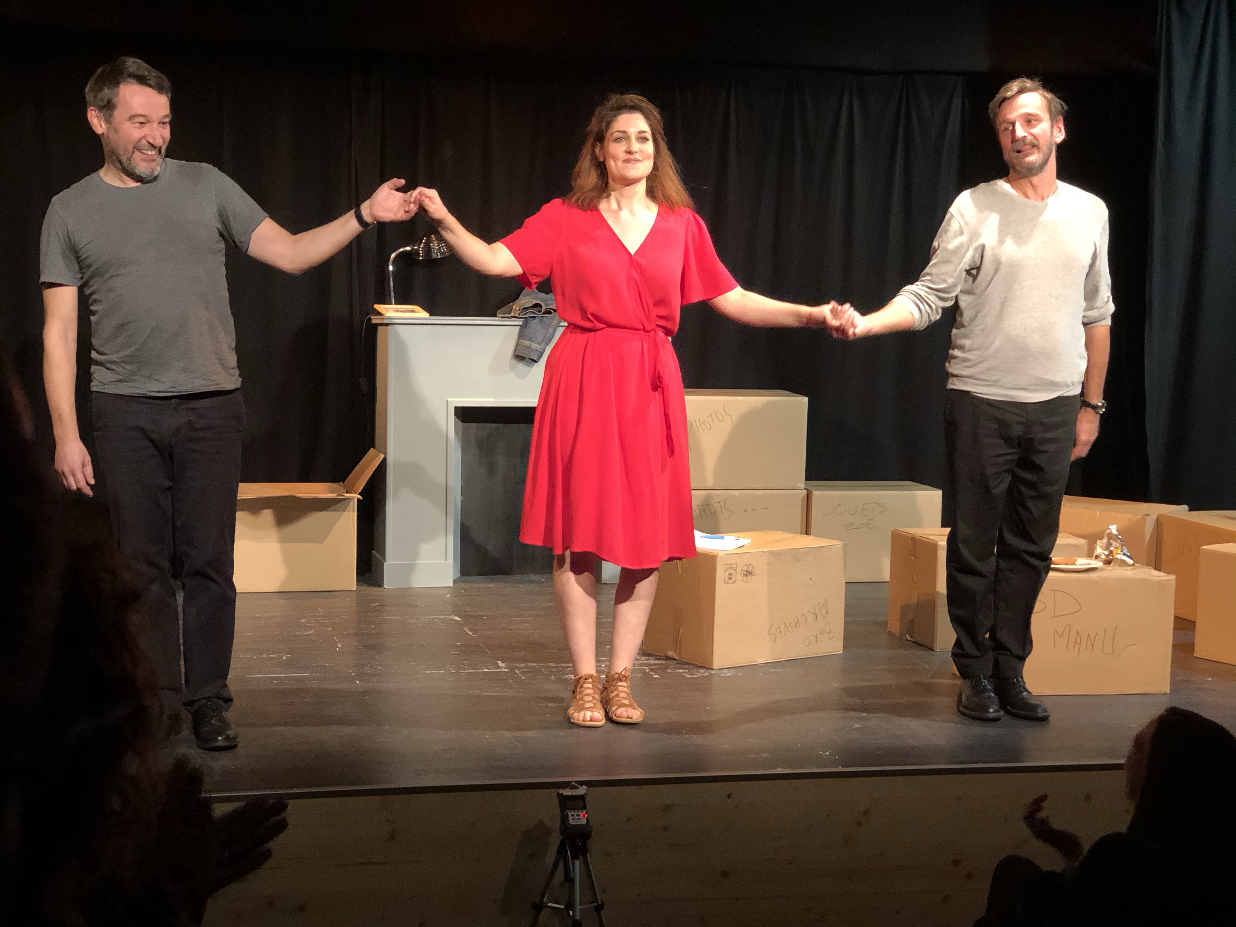 Mon Avis : C’est une belle comédie écrite par Christophe Corsand que j’ai découverte; mais pas seulement. Par cette comédie qui parle d’amitié mais aussi de courage et de sincérité que ce soit personnelle ou professionnelle. Avec ces 3 personnages que l’on pourrait avoir autour de soi ou avec qui l’on aurait déjà travaillé et ces dialogues très drôles et touchants aussi; on assiste vraiment à une tranche de vie à laquelle on aurait déjà été témoins ou même protagonistes; que ce soit dans notre vie privée ou publique. La mise en scène de Jean-Philippe Azéma est très simple au niveau décors (un appartement en plein aménagement), ce qui suffit amplement au texte de Christophe Corsand ; mais très précise, voire même méticuleuse, au niveau du jeu d’acteurs où le moindre détail ou la moindre intonation peut être source de rire ou d’émotion. Et les 3 comédiens qui interprètent cette pièce sont tout simplement drôles et excellents dans chacun de leur personnage : Olivier Doran est parfait dans son rôle de comédien très imbu de sa personne et légèrement orgueilleux; Christophe Corsand est très drôle et touchant en Manu, comédien et ami un peu gauche et pas très courageux, mais avec le cœur sur la main et la passion de son métier; et Elie Rapp, tout en douceur et conviction; sert, avec simplicité, d’élément perturbateur et aussi déclencheur dans l’univers personnel et professionnel de ces 2 vieux garçons.