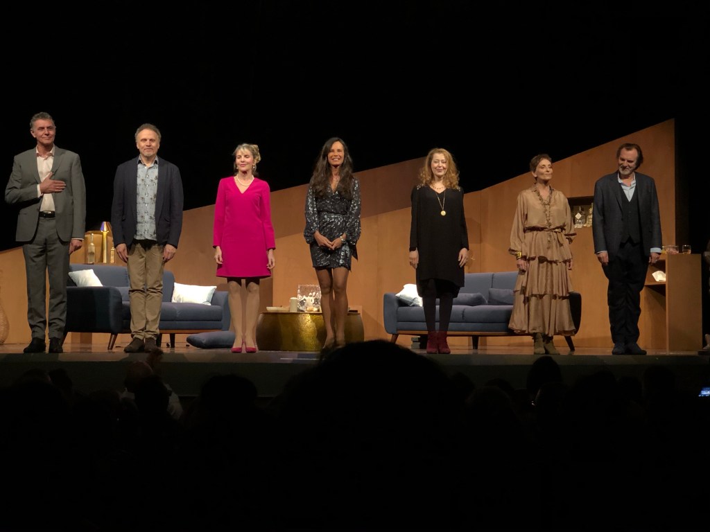 Du côté de la distribution; elle correspond parfaitement aux personnages de la pièce. Charlotte Kady est une parfaite Charly, initiatrice (ou pas) de cette soirée de retrouvailles; Olivia Dutron est délicieusement détestable en Caroline, peut-être la moins enthousiaste à cette soirée de « vieux » amis; Juliette Degenne est excellente en ancienne gothique reconvertie dans le bio et le végétalien limite « extrême »; et Nathalie Marquay-Pernaut joue admirablement bien la scandaleuse Marjorie, celle par qui les scandales et les jalousies arrivent. Chez ces Messieurs, on retrouve un Pierre Deny attendrissant dans ce personnage de Luc, qui ne semble pas heureux dans sa vie de couple avec Caroline et qui va sentir sa vie vaciller durant cette soirée révélatrice; Philippe Roullier campe un Pierre tout en prestance et charisme, puisqu’il est le seul à être devenu un célèbre psychiatre médiatique, mais qui en sait un petit peu plus sur la vie de ses « amis » bien qu’ils sont censés ne pas s’être revus depuis plusieurs années. Et Bernard Fructus est très drôle en Simon; qui va apporter un peu d’humour et de légèreté à cette soirée pesante pour tout le monde, ce qui ne l’empêche pas de regarder du coin de l’œil pour découvrir, en tout bon inspecteur qu’il est, qui a organisé cette soirée et qui a un poids sur la conscience depuis 35 ans…