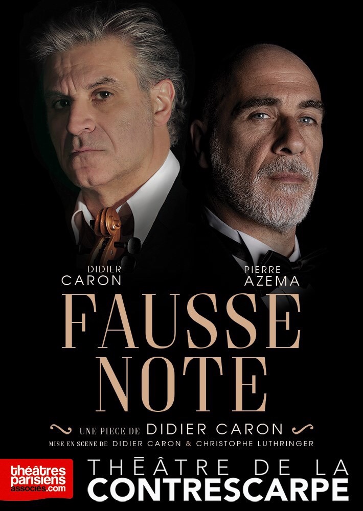 « Fausse Note » de Didier Caron; mise en scène de Didier Caron et Christophe Luthringer; avec Pierre Azéma et Didier Caron. Au Théâtre De La Contrescarpe jusqu’au 3 Mai; Du Jeudi au Samedi à 21h et Les Dimanches à 16h30.