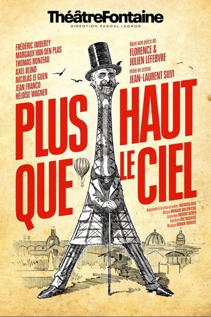 Mon Avis : Avant de Découvrir Plus Haut Que Le Ciel; je ne connaissais absolument rien sur les prémices de la construction de La Tour Eiffel. Et ce soir là, en plus d’avoir étoffé ma culture historique; j’ai découvert une pièce absolument fabuleuse. La pièce écrite par Florence et Julien Lefebvre est d’une véritable beauté; tout en humour, tendresse et poésie. On ne s’intéresse pas qu’à la Tour ni à son fondateur mais aussi à toute l’équipe qui ont tout fait pour créer et se faire dresser ce monument historique. La mise en scène de Jean-Laurent Silvi est tout simplement magnifique; elle nous donne la sensation d’être autant spectateur que participant à cette incroyable histoire, et ceci grâce aux vidéos projetés qui nous permettent de suivre l’évolution de l’histoire et de l’édifice, aux décors de Margaux Van Den Plas, aux costumes de Frédéric Olivier, aux musiques de Romain Trouillet et aux lumières d’Eric Milleville; tout ceci nous donne la sensation d’être en immersion totale dans l’Histoire.