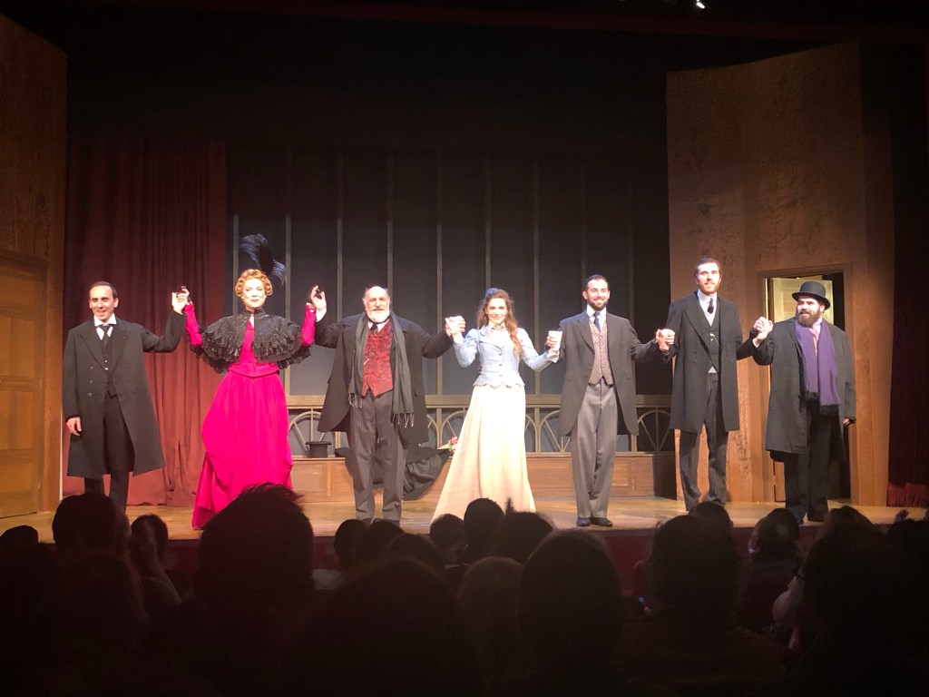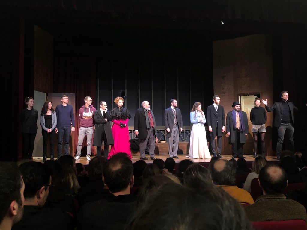 Et cette pièce n’en est qu’absolument plus sublime avec cette distribution excellente qui la fait vivre : Frédéric Imberty est un Magnifique Gustave Eiffel, passionné par cette idée absolument ahurissante et utopique, et prêt à tout pour aller jusqu’au bout, malgré les embûches; Margaux Van Den Plas est lumineuse dans le rôle de Claire Eiffel, fille admirative de son papa mais qui aimerait bien avoir aussi sa place dans la société, au point de pousser les 2 ingénieurs de son père à lui proposer l’idée « farfelue » de la Tour; Thomas Ronzeau est excellent en Adolphe Salles, bras droit froid et cartésien de Gustave Eiffel qui ne voit pas d’un très bon œil l’idée et la construction de ce « pylône » qui va non seulement ruiner la société et créer un scandale à Paris; Axel Blind et Nicolas Le Guen interprètent respectivement et avec excellence Emile Nouguier et Maurice Koechlin; les 2 ingénieurs dont est venue eu l’idée principale de la Tour et qui n’ont jamais abandonné l’idée, malgré la folie et l’utopie et les obstacles entourant cet édifice; Héloïse Wagner campe une Armande Bernouille à poigne et en prestance, qui voit énormément d’intérêt et d’intéressement à la construction de la Tour et à ce que celle ci peut rapporter; et que dire de Jean Franco et de son talent comique; chacune des apparitions est véritable matière à rire, qu’il soit le sous secrétaire d’état Bernouille, le chapelier de Melle Eiffel, le délégué italien des ouvriers de la Tour où le ministre qui inaugurera l’édifice.