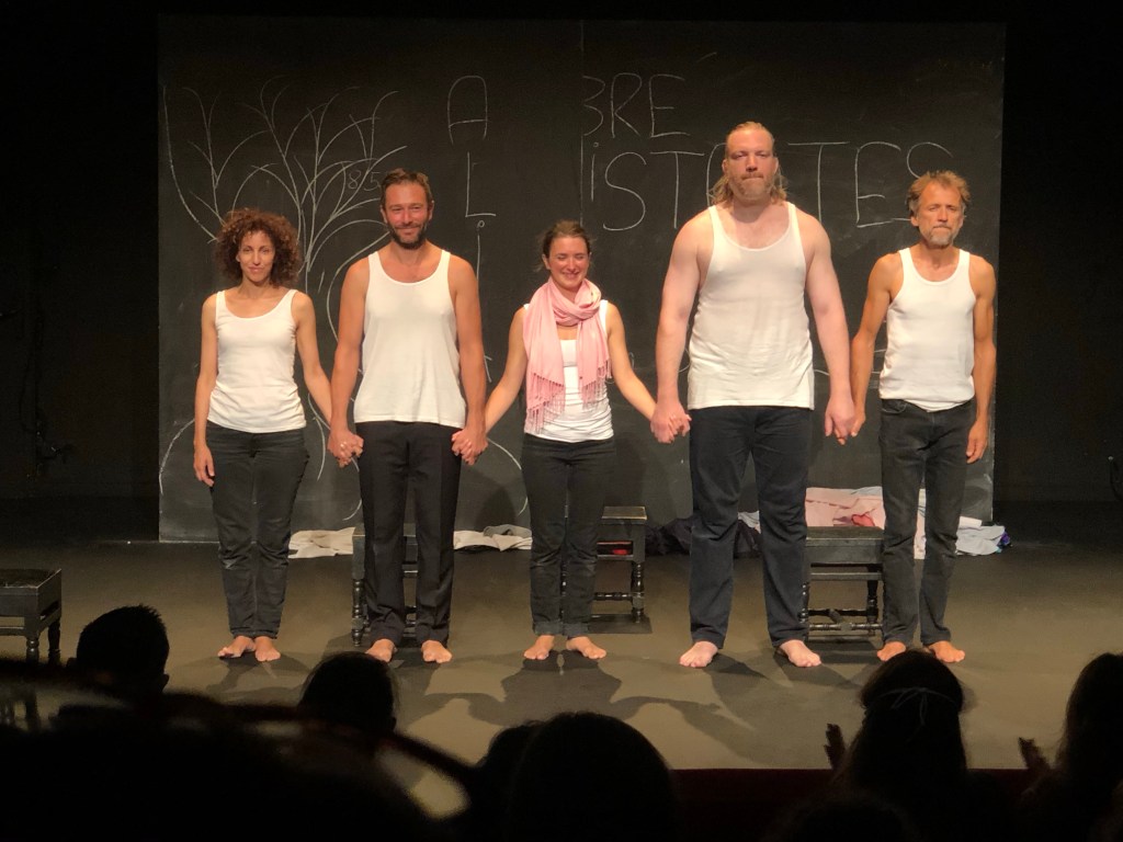 Et il est impossible aussi de ne pas être subjugué et épaté par le jeu extraordinaire de ces 5 comédiens : Stephanie Caillol, Fadila Belkebla, Charles Lelaure, Vincent Deniard et Patrick Blandin; qui enchaînent à une vitesse et avec une telle maestria tout ces personnages sans perdre ne serait ce qu’une seconde l’attention du public; passant en un claquement de droit du rire à l’émotion, de la jeunesse à la Viellesse, de l’Antiquité aux Années 80-90 et même 2000. Ils n’incarnent pas leurs personnages, ils les font vivre; et même revivre pour certains d’entre eux…