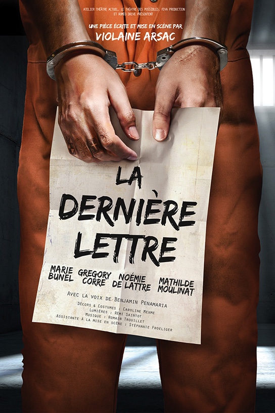 Mon Avis : Avec La Dernière Lettre; Violaine Arsac signe encore une fois une pièce forte et tendre, où le doute, la remise en question et le pardon sont les maîtres-mots. L’écriture de Violaine a ce don de toucher au cœur avec des thèmes et des situations très difficiles, y compris dans sa pièce précédente Les Passagers De L’Aube. Sa mise en scène, rappelant la cellule d’une prison, et les déplacements « inter-scènes » de nos quatre protagonistes; donnent la sensation qu’ils sont eux-même prisonniers comme Michaël Ellis, mais eux, prisonniers de leur doute et de leurs angoisses.