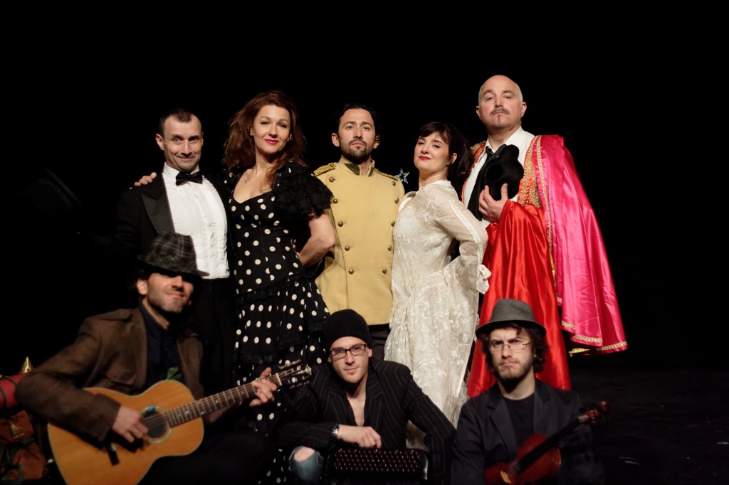 Et bien entendu; on ne peut qu’aimer la distribution; qui savent tous manier sans aucune exception la comédie (et quel sens de la comédie !) et l’opéra avec leurs voix absolument sublimes. Mention Spéciale à Mathieu Sempere qui excelle dans son rôle de ténor franco-italien (selon là où il se trouve) pas très futé; voire même très abruti; Bertrand Monbaylet me fait penser à Louis De Funès dans son rôle de directeur dépassé par les événements, désagréable avec les petits et très profil bas avec les plus costauds; Sophie Sara est très bien dans le rôle de Willelmina; La secrétaire un peu cruche mais qui cache plusieurs cordes à son arc; et qui est prête à s’en servir pour sauver la soirée. Philippe Moiroud est un parfait régisseur général gréviste et anti-patronat, mais finalement très porté sur son intérêt personnel sous prétexte d’aider le spectacle qu’il voulait empêcher de jouer; Ariane-Olympe Girard campe une fausse « douce » Micaëla; prête à tout pour faire son audition sur scène et être prise à Londres, y compris à laisser sortir son instinct primaire et de montrer son panel d’interprétation dans une scène mémorable (mais…chuuut 🤫). Et pour accompagner tout ce beau (et fou) monde; Romain Fitoussi, Julien Gonzales et Antoine Delprat sont d’excellents musiciens multi-taches, trouvés au débotté par Willelmina.