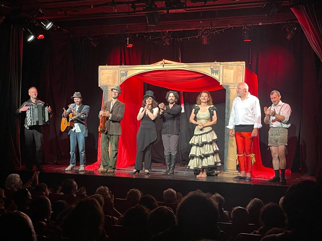 Aujourd’hui c’est autant de théâtre, de comédie et d’opéra dont je vais vous parler dans cet article. Car je vais vous parler de la pièce Carmen à Tout Prix; écrite par Sophie Sara; mise en scène par Manon Savary et interprétée par Bertrand Monbaylet, Sophie Sara, Philippe Moiroud; Ariane-Olympe Girard; Mathieu Sempere; Romain Fitoussi, Julien Gonzales et Antoine Delprat.