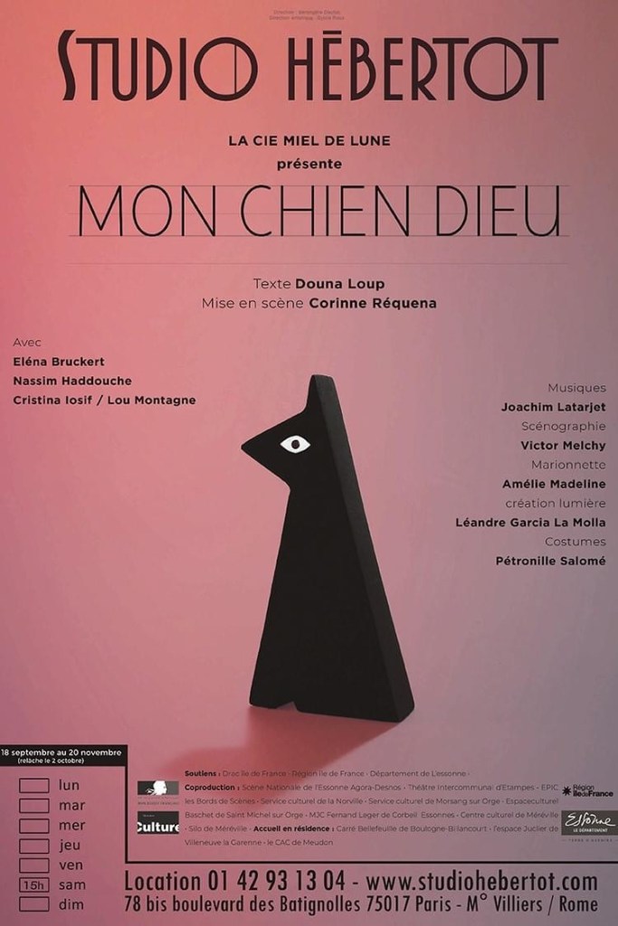 « Mon Chien-Dieu » de Douna Loup, mise en scène de Corinne Réquenna, avec Éléna Bruckert, Nassim Haddouche et Lou Montagne (en alternance avec Cristina Iosif). Au Studio Hebertot le samedi à 15h jusqu’au 20 Novembre.
