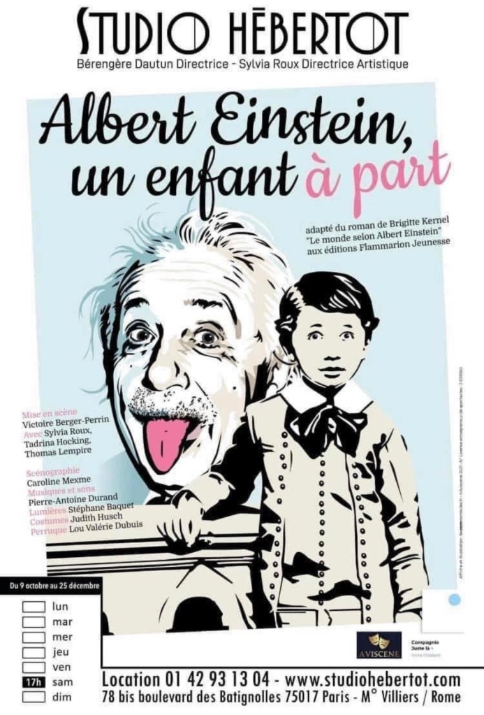 « Albert Einstein, un enfant à Part » d’après le roman de Brigitte Kernel « Le Monde Selon Albert Einstein »; mise en scène de Victoire Berger-Perrin, avec Sylvia Roux, Thomas Lempire et Tadrina Hocking. Au Studio Hebertot tout lés samedis à 17h jusqu’au 25 Décembre.