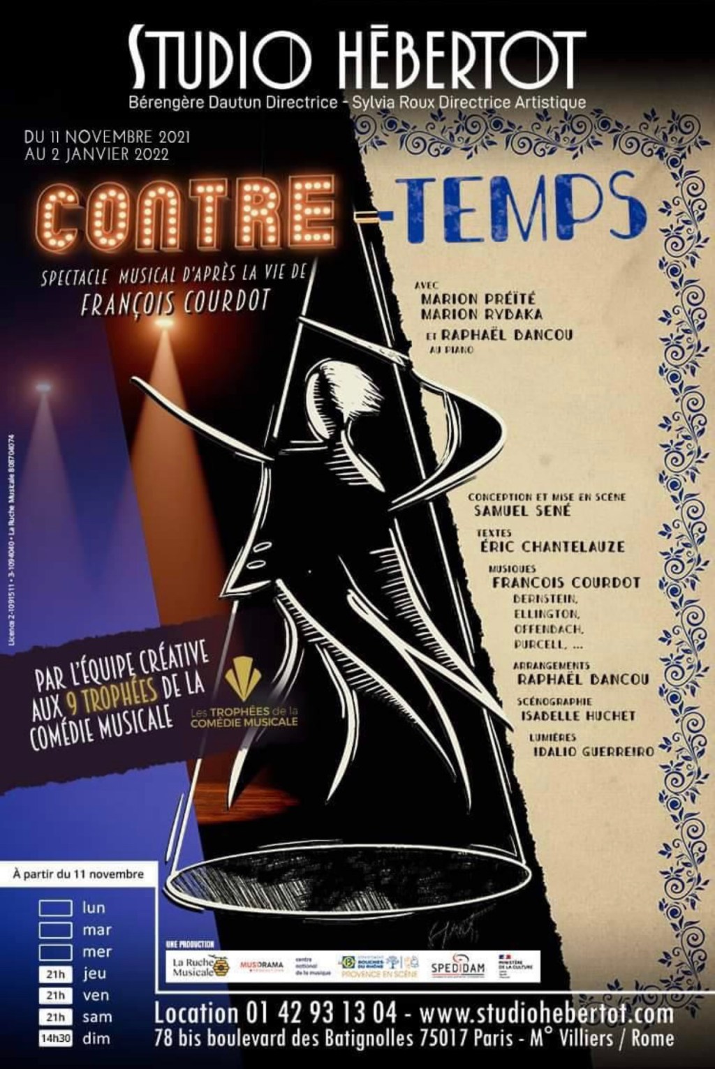 « Contre-Temps » de Samuel Séné et Éric Chantelauze; livret d’Éric Chantelauze; mise en scène de Samuel Séné; Arrangements Musicaux de Raphaël Bancou; avec Marion Rybaka, Marion Preïté et Raphaël Bancou. Au Studio Hebertot jusqu’au 2 Janvier; du jeudi au Samedi à 21h et le dimanche à 14h30.