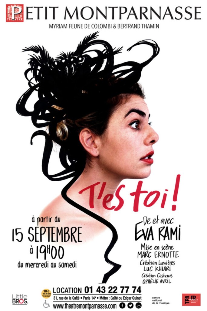 Pour démarrer cette année 2022; je vais vous parler d’un spectacle découvert il y’a quelques jours au Théâtre du Petit Montparnasse. Il s’agit du « seule en scène » T’es Toi !; mis en scène par Marc Ernotte et écrit et interprété par Eva Rami.