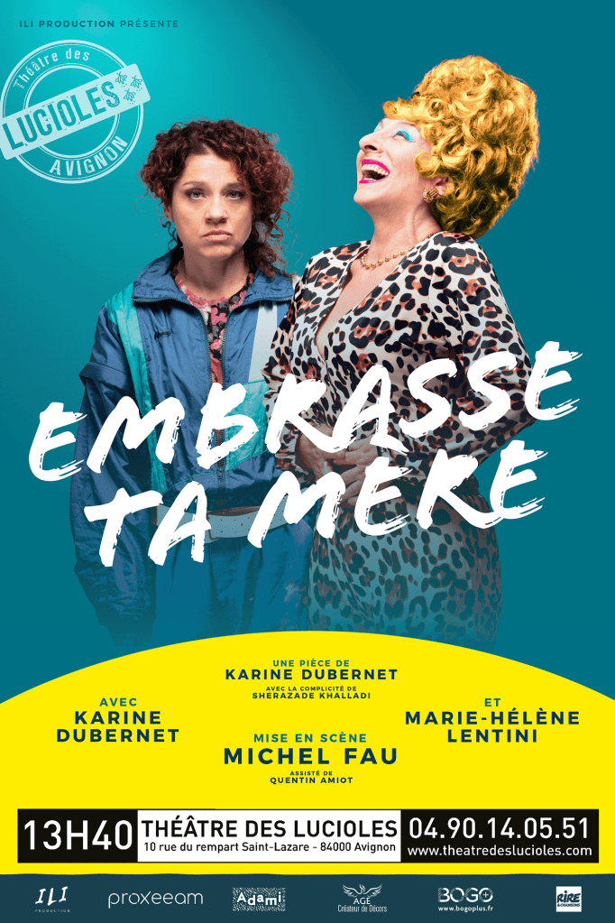 « Embrasse Ta Mère » de Karine Dubernet et Sherazade Khalladi; mise en scène de Michel Fau; avec Marie-Hélène Lentini et Karine Dubernet. Au Théâtre Des Lucioles à 13h40 (relâche le mercredi) jusqu’au 30 Juillet.
