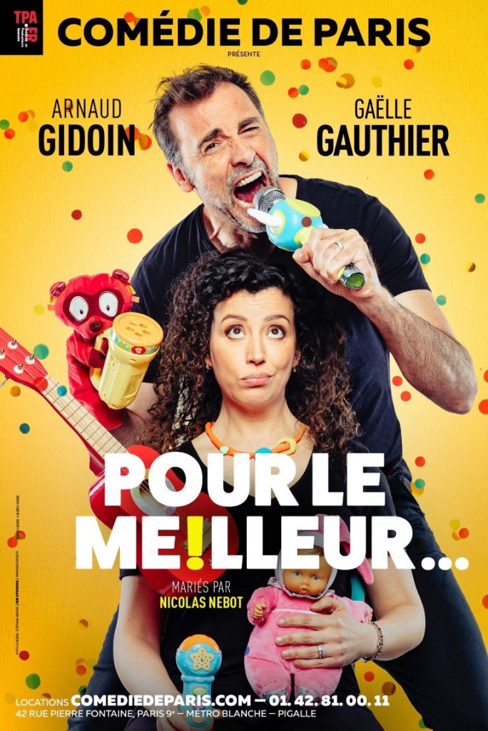 Aujourd’hui je vais vous parler d’un spectacle découvert à La Comédie de Paris. Il s’agit de Pour Le Meilleur…, une pièce écrite et interprétée par Arnaud Gidoin et Gaëlle Gauthier; dans une mise en scène signée Nicolas Nebot.