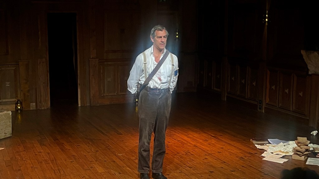 Mon Avis : 4 ans après son Roi Arthur; Jean-Philippe Bêche renoue avec ce si beau théâtre qu’est L’Épée De Bois pour nous y offrir cette fois une nouvelle œuvre; qui, bien que moins spectaculaire scéniquement parlant; en est tout autant belle et intense. En effet; son Maquisard est léger, intense, doux, mélancolique, violent; où les mots sont aussi forts et imposants que le narrateur de cette vie passée. Avec un simple changement d’intonation vocale; ce fabuleux comédien nous fait passer d’un personnage à un autre, passant avec aisance d’un auteur de roman historique plutôt timide à un ancien résistant; en passant par un petit garçon juif ou un condamné pour collaboration. La mise en scène est à l’image de l’écriture de Jean-Philippe Bêche : simple et intimiste; composée de quelques lampes à huile éparpillées sur toute la scène, une valise, une caisse en bois, des livres et des feuilles froissées; le tout entourant un tourne-disque, jouant en introduction Le Chant Des Partisans d’Yves Montand pour finir sur C’était Bien (Le Petit Bal Perdu) de Bourvil.