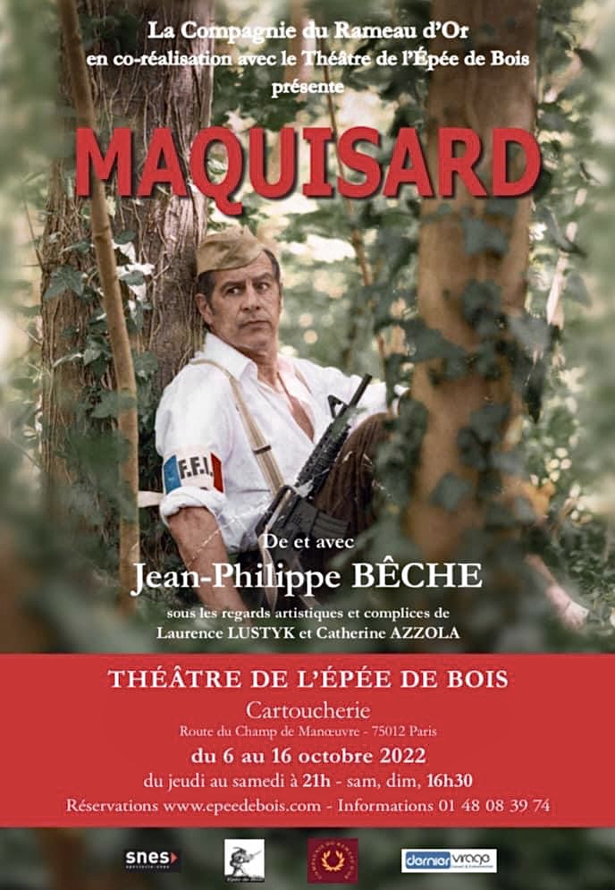 « Maquisard » de et avec Jean-Philippe Bêche; avec la complicité et collaboration artistique de Laurence Lustyk et de Catherine Azzola à la Mise en scène. Au Théâtre de L’Epée de Bois jusqu’au 16 Octobre; du jeudi au samedi à 21h + les samedis et dimanches à 16h30.