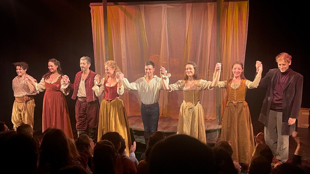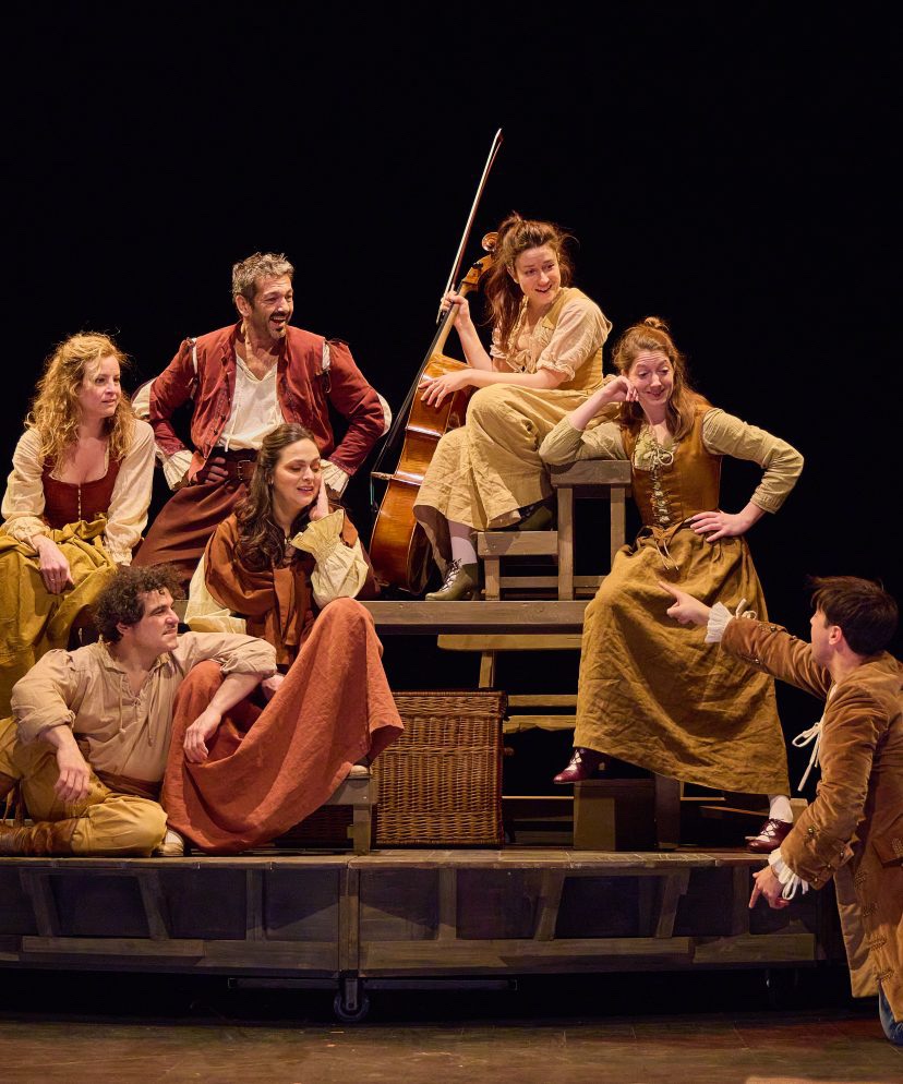 Et que dire de cette distribution qui est tout simplement magnifique; et qui nous transporte avec tant de justesse, d’émotion, de passion dans cette si belle histoire. On est captivés par le talent de Charlotte Matzneff, Violette Erhart, Charlotte Ruby, Mathilde Hennekine, Teddy Melis, Stéphane Dauch, Geoffrey Palisse et Gregoire Bourbier; qui sont tout simplement magistraux et éclatants de talents et d’émotion (un bravo supplémentaire à Violette Erhart et Charlotte Ruby qui nous font également vivre l’intensité du voyage et des émotions en musique au violon et au violoncelle) . On rit autant avec eux dans ces différences de « génération » que l’on est touchés par les colères et les jalousies que l’on découvre au fil de ce voyage et de l’histoire de ce grand homme de théâtre, de sa troupe autant amoureuse et passionnée et de ce jeune homme qui va vivre son amour pour ce maître à ses côtés.