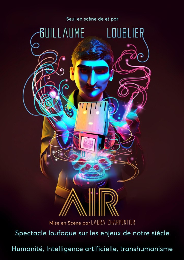 Aujourd’hui c’est d’un spectacle dit « seul en scène » un peu particulier dont je vais vous parler. Il s’agit de A.I.R. ; un spectacle écrit et interprété par Guillaume Loublier, dans une mise en scène signée Laura Charpentier.