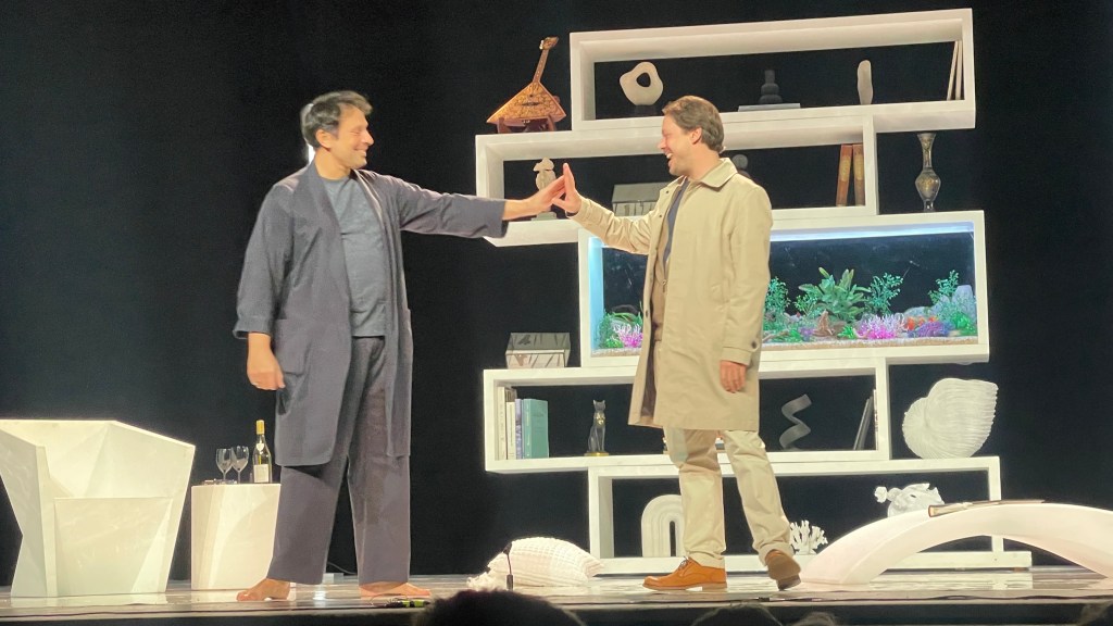 L’interprétation de Bruno Salomone et Davy Sardou est tout ce qu’il y’a de plus juste et convaincante. Leur fraternité et leur haine mutuelle fonctionne à merveille et mélange habilement et admirablement le rire et la tension entre eux, à la limite du drame psychologique. Bruno Salomone est stupéfiant dans ce personnage de grand frère à qui tout a réussi (enfin à peu près tout réussi); froid et orgueilleux envers son petit frère, qu’il méprise car il a toujours été considéré comme le fils préféré; et à qui il va faire payer psychologiquement toutes ces années le temps d’une soirée. Davy Sardou excelle dans ce rôle de petit frère débarquant en pleine nuit chez son frère, tournant autour du pot à faire enrager son frère jusqu’à porter la première banderille qui va provoquer ce règlement de compte fraternel et régler les comptes vieux de tant d’années.