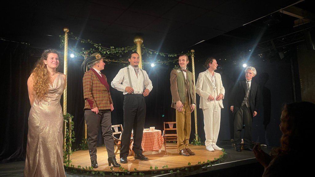 Côté distribution; c’est un vrai vivier d’humour et d’émotion. Émilien Raineau, qui était taquin et malicieux à souhaits en Figaro; est ici rempli d’émotion dans son interprétation d’Albert, jeune homme vivant dans le souvenir de celle qu’il a aimé. Camille Delpech est d’une douceur sublime et d’une tendresse dans le personnage d’Amanda; elle lui apporte un côté espiègle et un peu rebelle dans la « mission » que lui confie la duchesse. Mais dans cette adaptation de Leocadia; il y’a une belle part laissée à l’humour et à la drôlerie, et ce grâce à Valerie Français qui campe ici une duchesse très volubile, exubérante et fantasque; qui a l’air de vivre dans son monde, en dehors de la réalité. Elle a aussi un souffre-douleur; Germain, interprété par l’excellent et hilarant Axel Stein-Kurdzielewicz, qui provoque des fous rires à chaque apparition; il a un don inné pour faire rire, des fois même sans rien dire. Drys Penthier est lui aussi une véritable source de rires permanente; plutôt par les personnages qu’il interprète et les situations dans lesquels il se retrouve, il a un petit côté Pierre Richard avec son air pris dans des situations et des réactions auxquelles il n’est pas habitué et se retrouve avec un air pataud, perdu; qui le rentre très drôle et très attachant. Et pour finir cette distribution de haut vol; David Legras est un parfait conteur; taquin, souriant et prenant du plaisir entraîner le public dans cette tendre et particulière histoire de romance et de souvenirs.