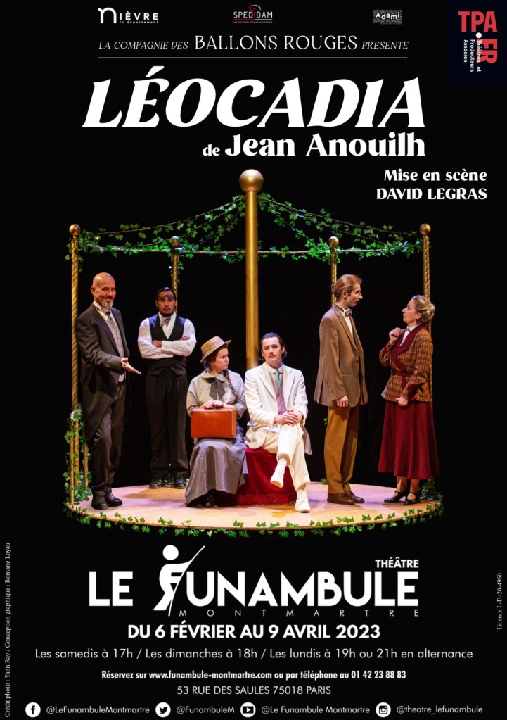 « Leocadia » de Jean Anouilh; mise en scène de David Legras, avec Camille Delpech, Émilien Raineau, Valérie Français, Drys Penthier, Axel Stein-Kurdzielewicz et David Legras (en alternance avec Jacques Poix-Terrier). Au Théâtre Le Funambule Montmartre du 6 Février au 9 Avril; les samedis à 17h, les dimanches à 18h et les lundis à 19h.