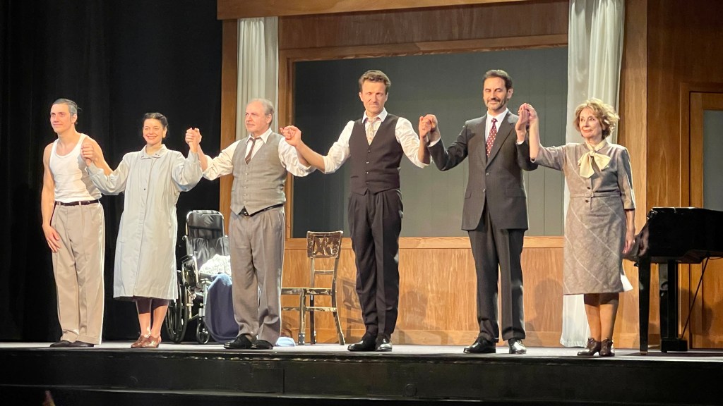 La distribution est absolument excellente; et se donne Coeur et âme pour redonner vie à toutes les personnes ayant eu grande importance dans la vie du prodige. Thomas Gendronneau est stupéfiant et magistral dans le rôle de Glenn, non pas le grand prodige du piano, mais l’homme derrière le virtuose : sensible, tendre, enfantin, effacé, triste, torturé ; seul, y compris entouré de tout ce petit monde. Josiane Stoleru est extraordinaire de froideur, de méchanceté et d’amour dans le rôle de Flora; la mère ultra protectrice de Glenn, qui tisse une toile d’amour et de protection autour de son fils qu’elle chérit tant et qu’elle couve depuis son enfance; une toile telle l’araignée qui empêche tout ce qui tourne autour de s’approcher de sa proie. Elle nous montre une mère ignoble face aux gens qui s’approchent de son fils; en particulier la petite Jessie, qu’elle prend pour une rivale dans le cœur de Glenn. Bernard Malaka incarne brillamment Bert, le père de Glenn, assez en retrait par rapport à sa femme, qui n’est pas plus tendre avec lui qu’elle ne l’est avec avec les autres; mais il reste, même éloigné, rempli d’amour et de fierté pour son fils, à qui il ne souhaite que ce dont lui rêve; et non ce que veut sa femme. Lison Pennec est touchante a souhaits et d’une douceur sans faille dans le rôle de Jessie, la cousine de Glenn qui lui voue un véritable amour; mais très rapidement rempli d’embûches et de méchanceté par le comportement de Flora, ce qui provoquera l’éloignement de Glenn. Michel Scotto Di Carlo est un très bon Walter Hombourger (aucun lien avec le sandwich) qui verra un virtuose en Glenn; qui l’accompagnera et le suivra partout et dans toutes ses lubies et phobies; et Stéphane Roux complète brillamment ce casting en alternant avec force et aisance plusieurs personnages, tels que le secrétaire de Glenn à la fin de sa vie ou le patron du studio d’enregistrement dans lequel il enregistra les Variations Goldberg.